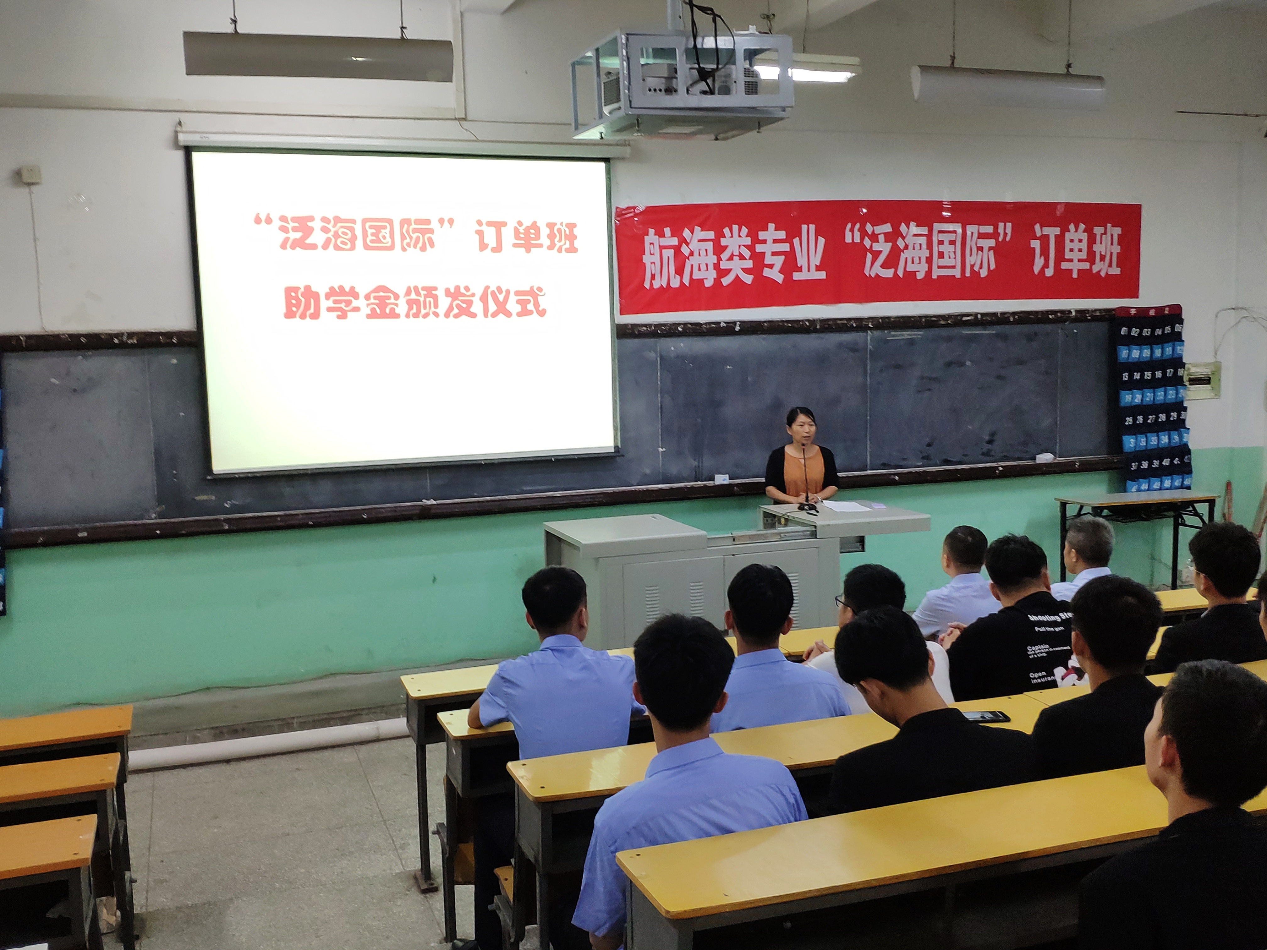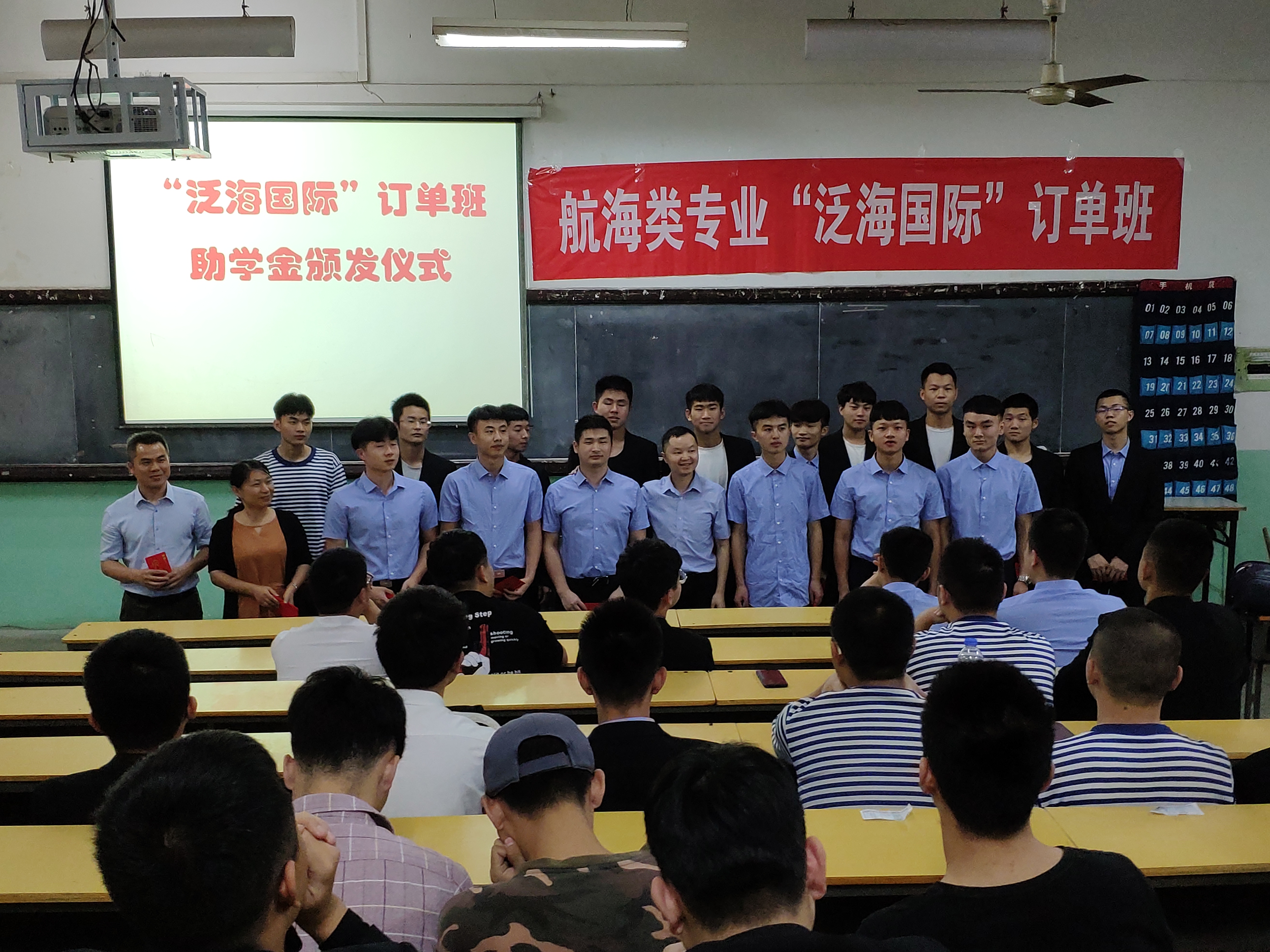 最后,周總為航海類專業(yè)泛海訂單班學(xué)員頒發(fā)本學(xué)年助學(xué)金并合影留念。