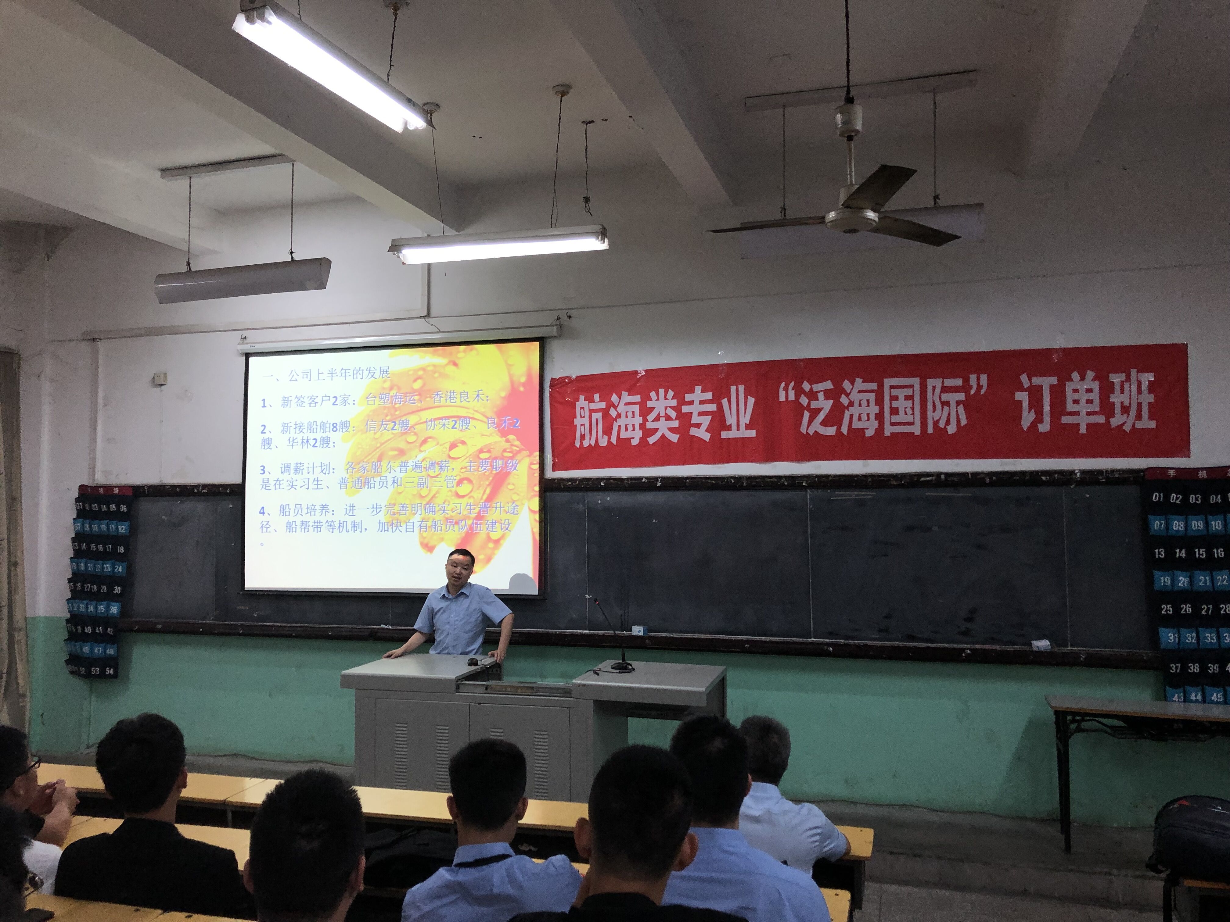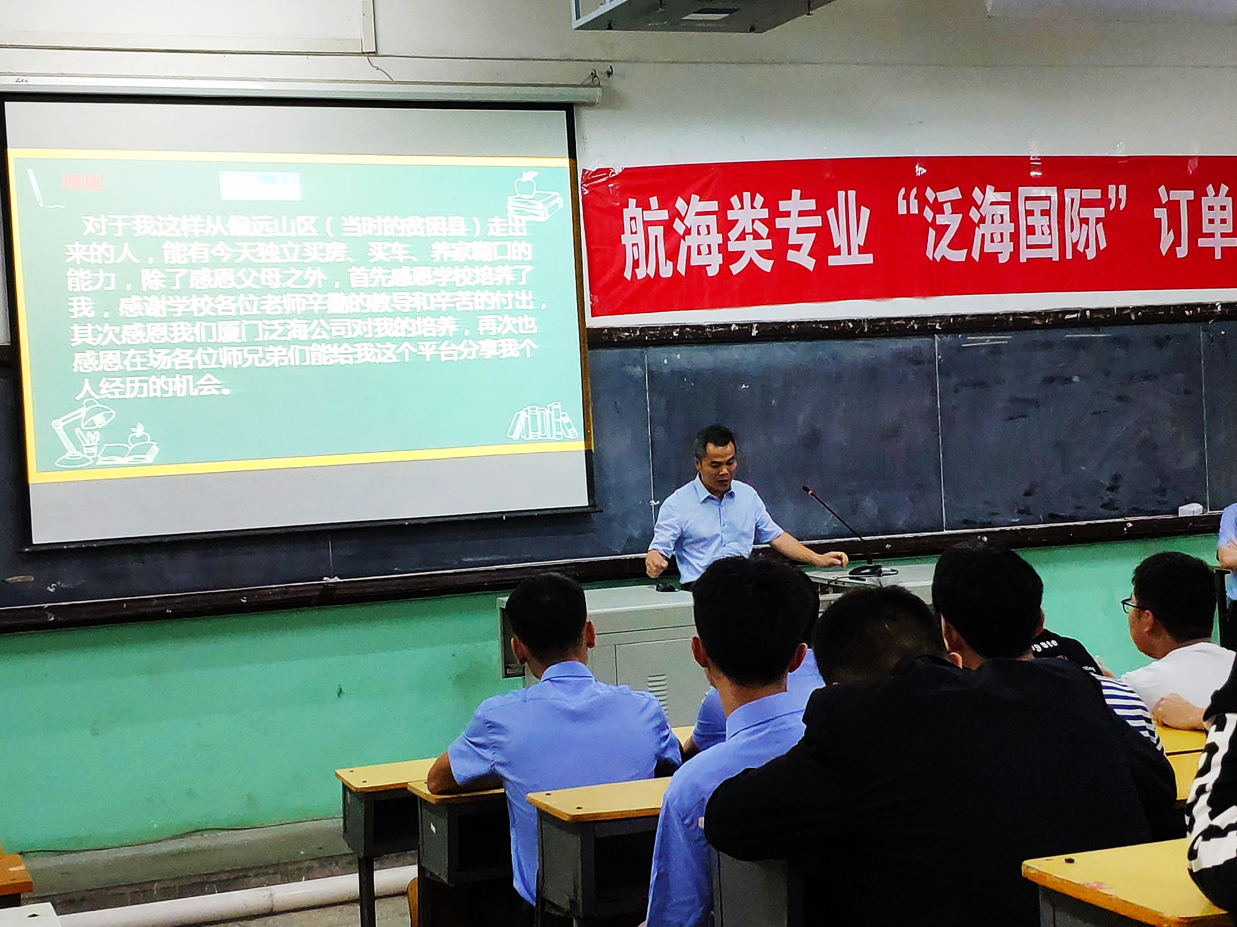 廈門泛海國際船舶管理有限公司副總經(jīng)理周永煌感謝學(xué)院對(duì)于訂單班重視,同時(shí)也為同學(xué)們帶來公司近半年來的發(fā)展?fàn)顩r和未來為同學(xué)們量身定制個(gè)人職業(yè)發(fā)展規(guī)劃,鼓勵(lì)同學(xué)們堅(jiān)定選擇,努力學(xué)習(xí),堅(jiān)持就會(huì)有所收獲。