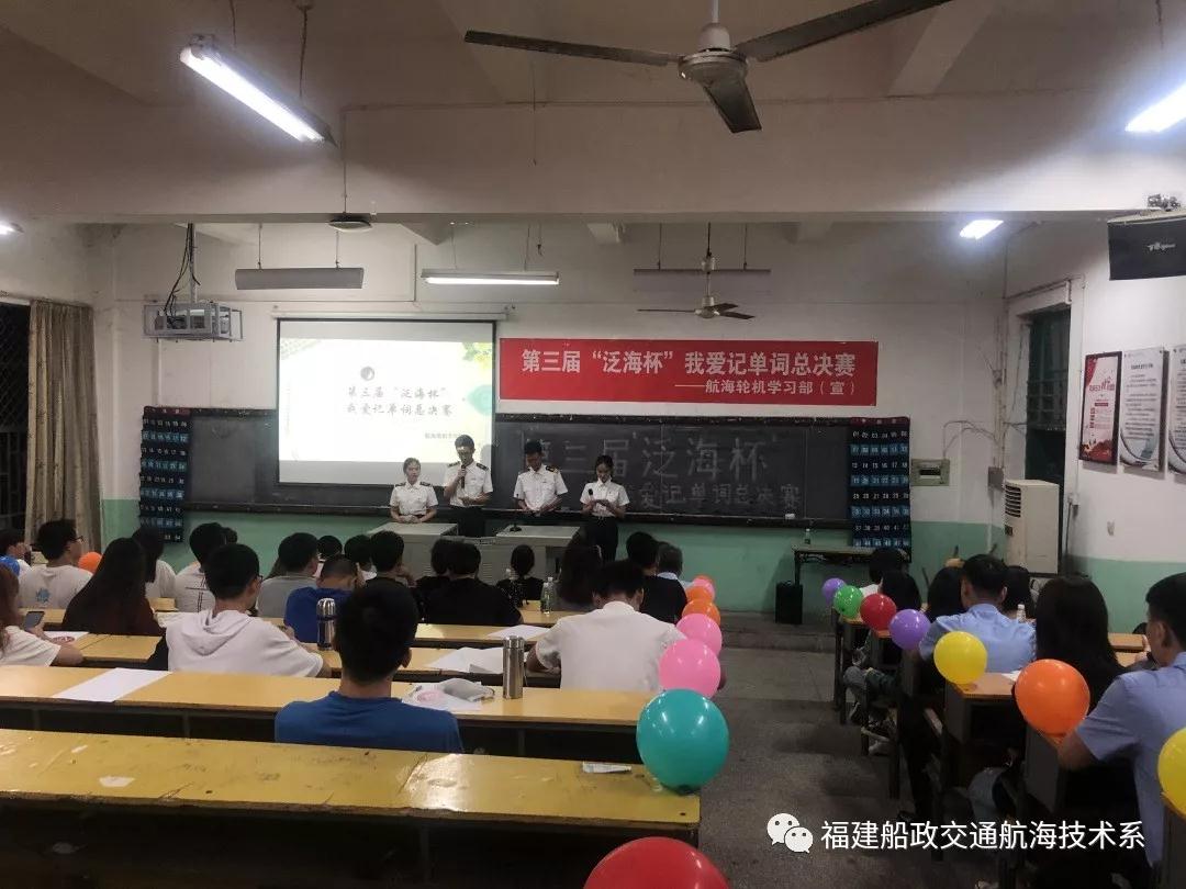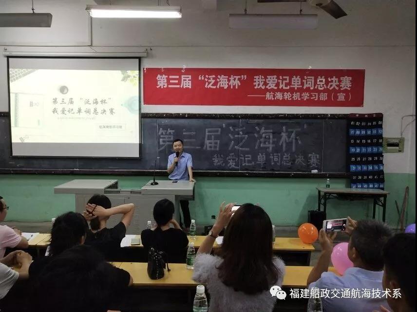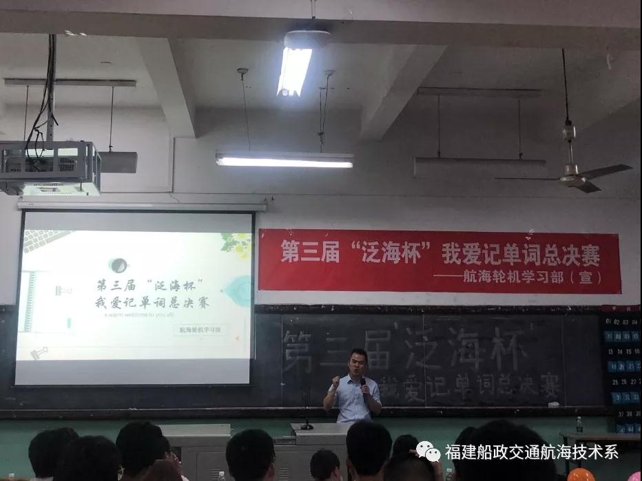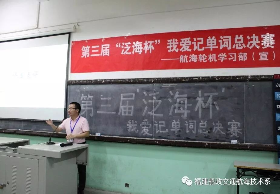 2019年5月22日晚,由航海技術(shù)系學(xué)習(xí)部、輪機(jī)工程系學(xué)習(xí)部主辦、由廈門泛海國際船舶管理有限公司贊助的的第三屆“泛海杯”我愛記單詞英語大賽決賽在航東大圓滿落幕。航海技術(shù)系副主任翁國玲副教授、廈門泛海國際船舶管理有限公司副總經(jīng)理周永煌、廈門泛海國際船舶管理有限公司業(yè)務(wù)一部經(jīng)理吳文炳船長、航海技術(shù)系林森茂老師、輪機(jī)工程系方麗君老師,航海技術(shù)系、輪機(jī)工程系學(xué)生會主席團(tuán)代表、參賽選手參與此次大賽,本次大賽由翁國玲副教授、林森茂老師、方麗君老師擔(dān)任現(xiàn)場評委。