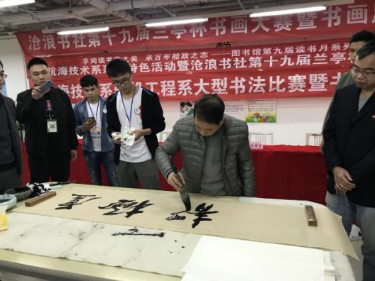 享閱讀書香之美,承百年船政之志。2019年3月30日早九點(diǎn),在圖書館一樓自習(xí)室舉辦航海技術(shù)系系部特色活動(dòng)暨滄浪書社第十九屆蘭亭杯書法大賽。出席本次活動(dòng)有航海系團(tuán)總支書記林杰老師、輪機(jī)系主任陳清彬老師及書法指導(dǎo)老師林祥庚老師。