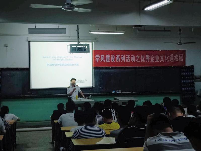 為深入學(xué)習(xí)貫徹落實(shí)習(xí)近平新時(shí)代中國(guó)特色社會(huì)主義思想和黨的十九大精神,切實(shí)加強(qiáng)學(xué)風(fēng)建設(shè),促進(jìn)學(xué)生學(xué)習(xí)與發(fā)展,航海技術(shù)系于6月12日晚七點(diǎn),在航東大舉行學(xué)風(fēng)建設(shè)系列活動(dòng)之優(yōu)秀企業(yè)文化進(jìn)校園“航海技術(shù)專業(yè)學(xué)生職業(yè)規(guī)劃以及認(rèn)知講座”。參加講座的有航海技術(shù)系翁國(guó)玲副主任及17、18級(jí)航海技術(shù)專業(yè)全體學(xué)生。