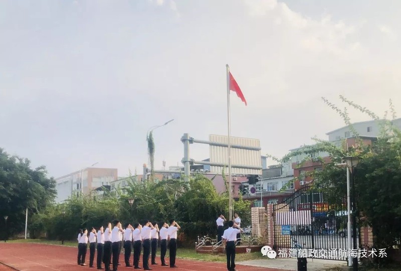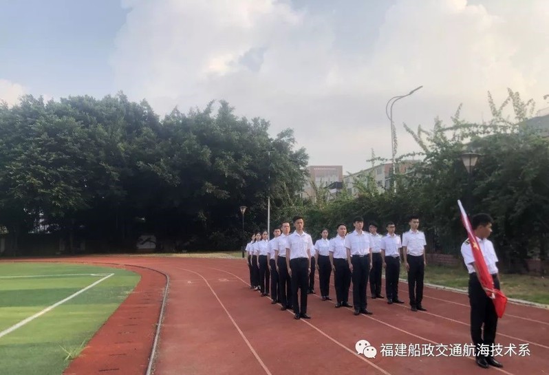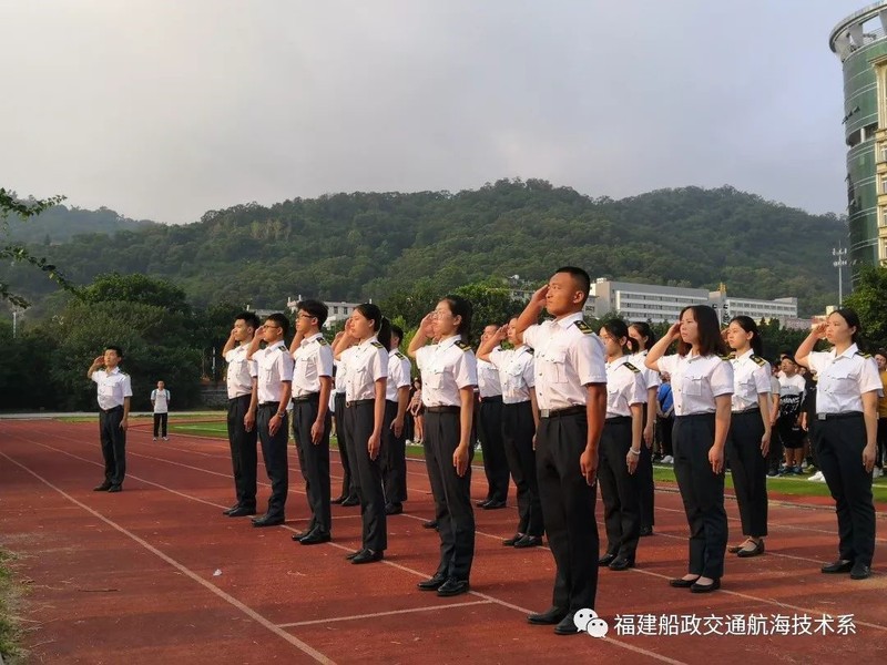 早晨7點(diǎn),航海技術(shù)系為新生們上了一堂特殊的愛(ài)國(guó)教育課——升旗儀式。