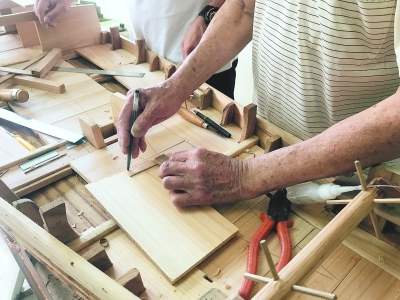 然而,畫圖容易,真正組裝時,卻依舊需要經(jīng)驗老到的師傅出馬。為此,江金春邀請林瑞洛的弟弟、同為造船老工匠的林瑞好出馬,指導學生一起制作丹陽船模。