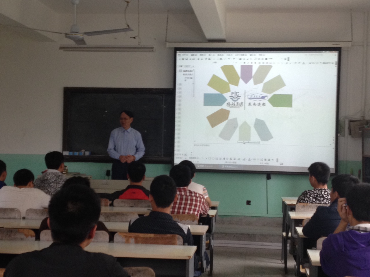 (四)5月12日受陳清彬主任誠邀,福州億力船舶科技有限公司的江金春總經(jīng)理來我系為17級(jí)船舶、船機(jī)的學(xué)生舉辦講座,講解近來福建省造船業(yè)行業(yè)情況以及億力公司的企業(yè)文化,通過ppt圖片展示,且一一回答學(xué)生提問,使學(xué)生對(duì)就業(yè)前景有了更深層次的了解。