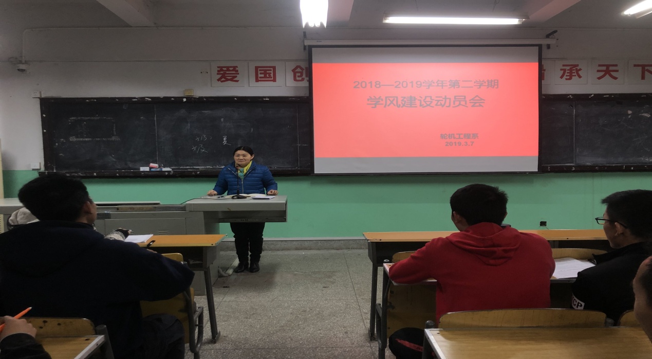 讓學(xué)生盡快投入到學(xué)習(xí)工作中來,2019年3月7日下午4:40,輪機工程系在航海樓多媒體教室召開了學(xué)風(fēng)建設(shè)動員會。出席動員會的有輪機工程系書記蔡昀平、系團(tuán)總支書記謝小煌、系輔導(dǎo)員王曉艷,系各班主要學(xué)生干部、主要學(xué)團(tuán)干部和學(xué)生黨員代表參加了會議。