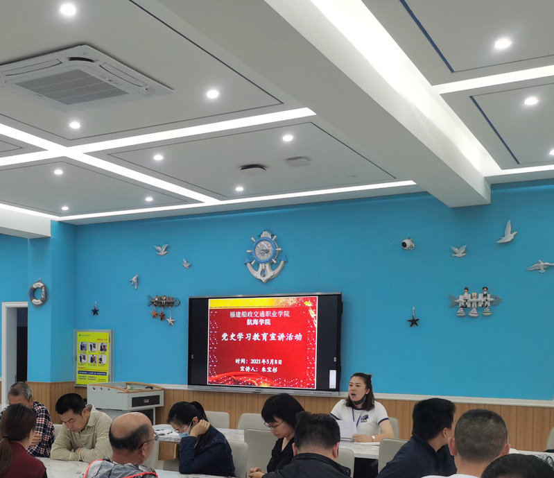 為進(jìn)一步貫徹落實(shí),習(xí)近平總書記在黨史學(xué)習(xí)教育動員大會上的重要講話精神,扎實(shí)推進(jìn)學(xué)院黨史學(xué)習(xí)教育,獻(xiàn)禮中國共產(chǎn)中國共產(chǎn)黨成立100周年。2021年5月8日,航海學(xué)院黨總支副書記在五高實(shí)訓(xùn)中心開展黨史教育宣講活動,全體教職工參加宣講活動。