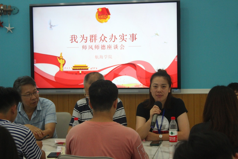 為加強航海學(xué)院師德師風(fēng)建設(shè),營造良好育人環(huán)境與學(xué)習(xí)氛圍,更好地傾聽學(xué)生心聲,精準(zhǔn)掌握學(xué)生需求,找準(zhǔn)抓實學(xué)生最急最憂最盼的實際問題,切實為學(xué)生辦實事,進一步了解航海學(xué)院課堂教學(xué)質(zhì)量和學(xué)生的學(xué)習(xí)情況,航海學(xué)院于6月3日中午在校友樓6樓五高實訓(xùn)室開展“我為群眾辦實事”師生座談會。