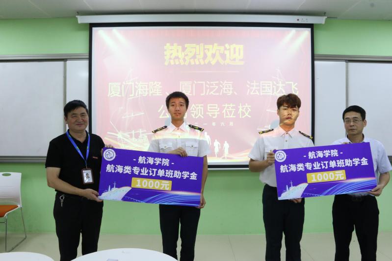 為更好服務航運企業(yè),強化航海類專業(yè)學生專業(yè)思想,航海學院前期經(jīng)過與廈門海隆對外勞務合作有限公司、廈門泛海國際船舶管理有限公司商議,于2021年6月16日上午、下午分別隆重舉行海隆薩鎮(zhèn)冰班、泛海嚴復班的開班儀式和助學金發(fā)放儀式。