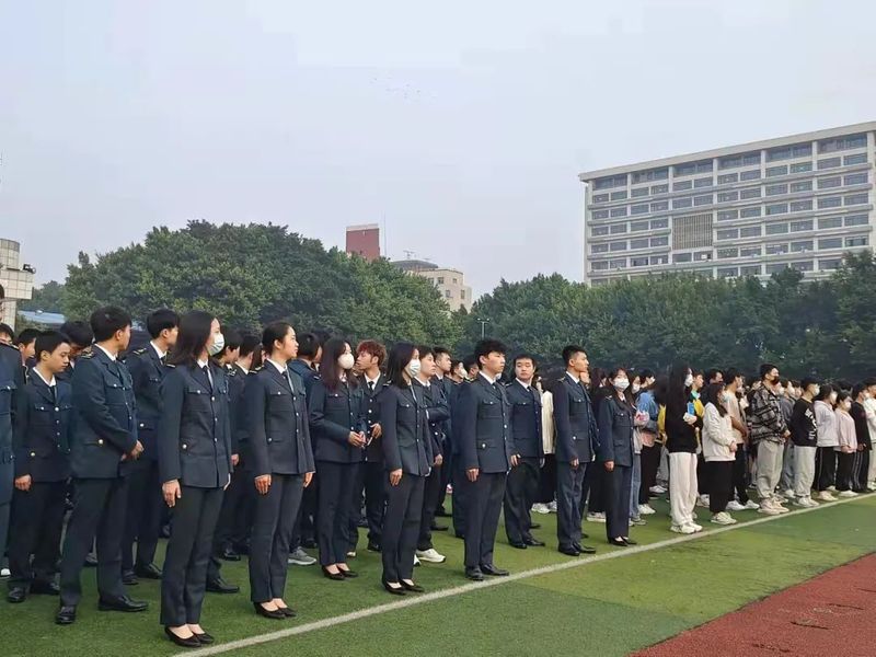 忙碌的一周從莊嚴(yán)的升旗儀式開始。早晨七點(diǎn),21級(jí)的同學(xué)們身著軍裝整齊有序的準(zhǔn)時(shí)踏入南區(qū)操場(chǎng)。同學(xué)們佇立凝望著國旗冉冉升起。國旗在晨風(fēng)中飄揚(yáng),五星紅旗在陽光下閃著耀眼的光芒,似乎在激勵(lì)著大家一路奮進(jìn),奔向前方。