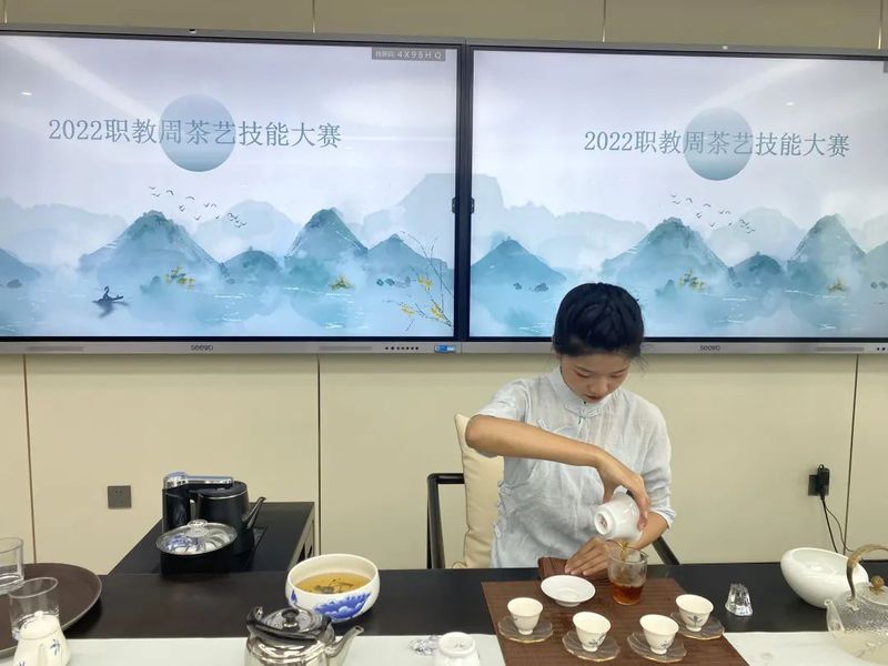 21世紀(jì)時(shí)中國(guó)人的世紀(jì),也必將是中國(guó)茶的世紀(jì),茶文化是中國(guó)博大精深傳統(tǒng)文化最靚麗的符號(hào)之一,為迎接職教周,弘揚(yáng)中華茶文化,將“技能,讓生活更美好”的精神融入職業(yè)教育人才培養(yǎng)中,為了解中國(guó)茶文化,體會(huì)中國(guó)茶文化博大精深,給學(xué)生藝術(shù)的熏陶和美的享受。2022年5月12日,福建船政交通職業(yè)學(xué)院《萬(wàn)名學(xué)子,百項(xiàng)技能大賽——茶藝技能大賽》在南區(qū)新實(shí)訓(xùn)大樓二樓中式郵輪五高訓(xùn)練中心二期舉行。國(guó)際郵輪乘務(wù)管理專(zhuān)業(yè)的茶藝愛(ài)好者參加了本次比賽。比賽設(shè)置三個(gè)環(huán)節(jié),從茶藝展示、茶類(lèi)識(shí)別以及口試環(huán)節(jié),全方位的考察選手們?cè)诓杷嚰寄苌系乃健?/p>