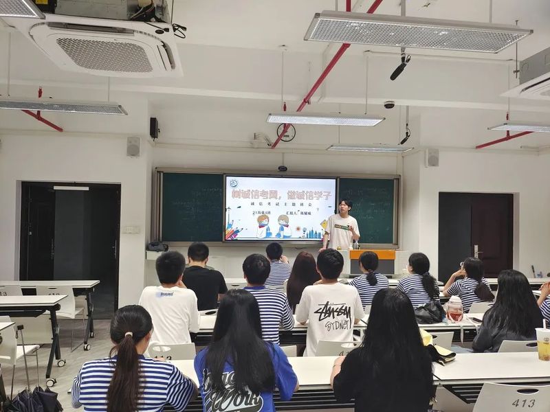 以主題班會為核心,提前做好宣傳教育。誠信是中華民族的傳統(tǒng)美德,誠信考試是立德樹人的重要內(nèi)容。各班級利用主題班會、專題活動開展考風(fēng)、考紀(jì)及誠信教育活動,開展誠信考試活動進(jìn)行警示教育,組織學(xué)生學(xué)習(xí)學(xué)院考試相關(guān)的規(guī)章制度,引導(dǎo)學(xué)生遵章守紀(jì),杜絕考試舞弊行為。