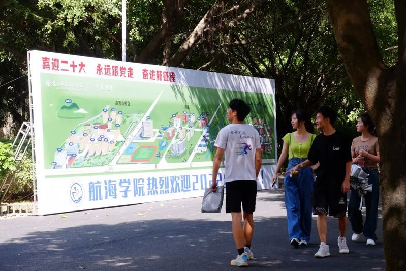 “你好,新同學(xué)”,校道上隨處可見歡迎的橫幅和富有創(chuàng)意的展板;為了確保各位新生能夠成功的完成報(bào)到,一路上都設(shè)有航海學(xué)院的指示路標(biāo),指引著大家能夠準(zhǔn)確的找到我們報(bào)到點(diǎn)。