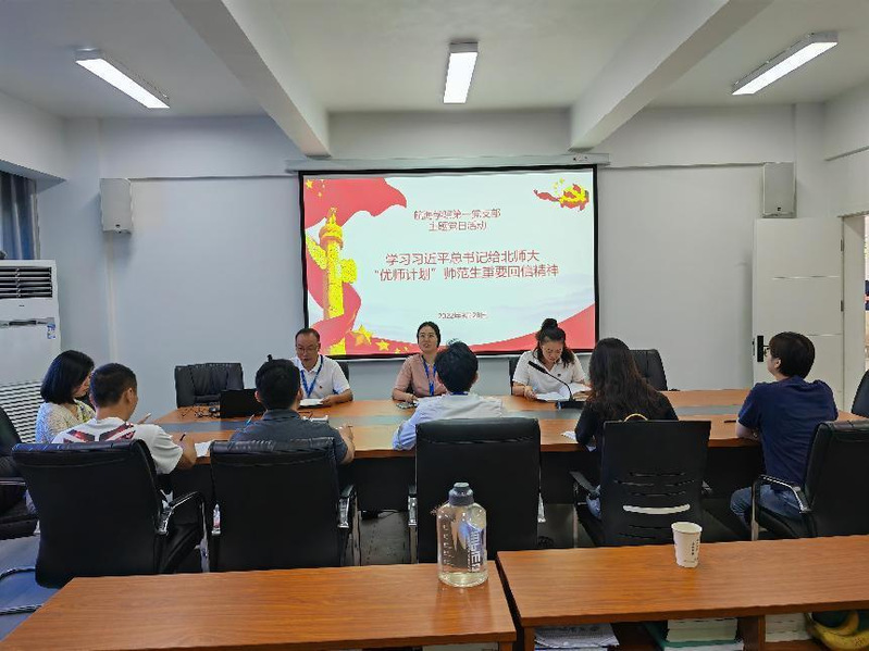 在第38個(gè)教師節(jié)到來之際,習(xí)近平總書記給北京師范大學(xué)“優(yōu)師計(jì)劃”師范生代表回信,對(duì)他們寄予殷切期望,并向全國(guó)廣大教師致以節(jié)日祝福。2022年9月28日,航海學(xué)院第一黨支部在校友之家三樓會(huì)議室開展了“學(xué)習(xí)習(xí)近平總書記給北京師范大學(xué)‘優(yōu)師計(jì)劃’師范生重要回信精神” 的主題黨日活動(dòng)。會(huì)上,大家就習(xí)近平總書記回信做熱烈討論,大家分別從學(xué)生黨員、未來理想等多角度、多方面展開交流。系黨支部書記王曉艷主持會(huì)議。