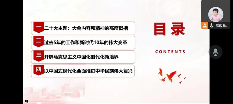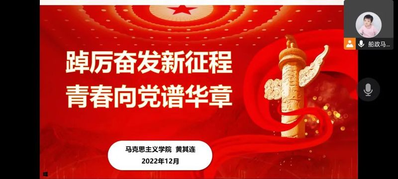 最后,黃其連老師鼓勵同學(xué)們,一代人有一代人的使命,一代人有一代人的擔當。作為新時代的航海學(xué)子,要謹記習(xí)近平總書記的教誨,深入學(xué)習(xí)、認真領(lǐng)悟黨的二十大精神,以學(xué)促行、學(xué)用結(jié)合,真正把黨的二十大精神落實到學(xué)習(xí)工作的各個方面,爭做努力奮斗的新青年!