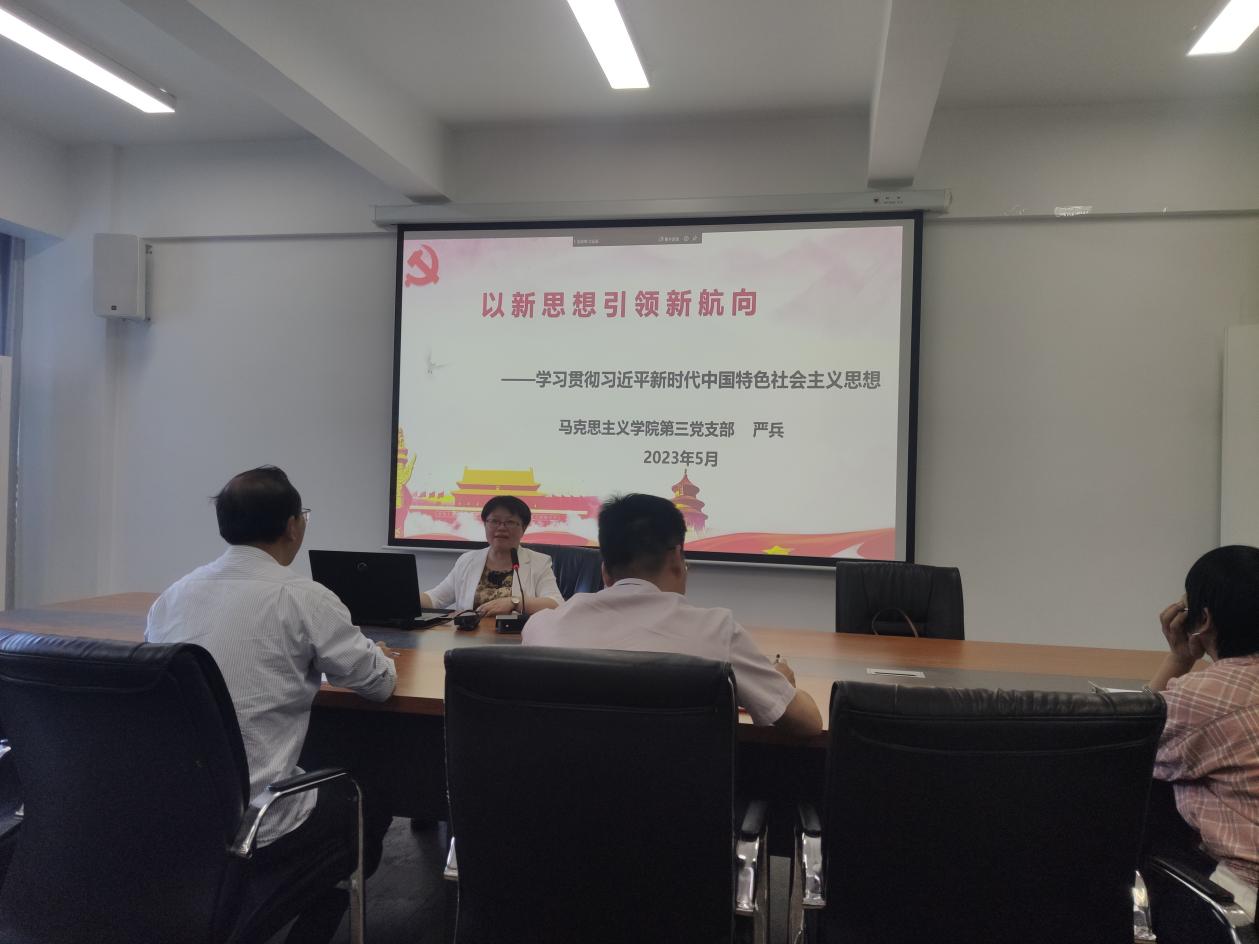 本次讀書班邀請到馬克思主義學(xué)院副教授嚴(yán)兵老師,以《以新思想引領(lǐng)新航向——學(xué)習(xí)貫徹習(xí)近平新時代中國特色社會主義思想》為題作讀書班專題輔導(dǎo)報告。