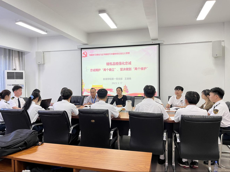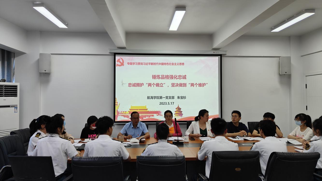 航海學(xué)院第一黨支部于2023年5月17日在校友樓307召開主題教育學(xué)習(xí),研討專題-錘煉品格強(qiáng)化忠誠——忠誠擁護(hù)“兩個確立”,堅決做到“兩個維護(hù)”,專題主要發(fā)言人為支部書記王曉艷和支部委員朱寶杉。
