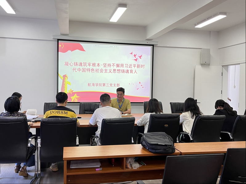 航海學院第三黨支部于2023年5月17日在校友樓307召開主題教育學習,研討專題——凝心鑄魂筑牢根本-堅持不懈用習近平新時代中國特色社會主義思想鑄魂育人,專題主要發(fā)言人為支部書記李翼。主要發(fā)言學習內(nèi)容為堅定不移高舉中國特色社會主義偉大旗幟。黨和國家的長期實踐充分證明,只有社會主義才能救中國,只有中國特色社會主義才能發(fā)展中國。只有高舉中國特色社會主義偉大旗幟,才能團結(jié)帶領(lǐng)全黨全國各族人民全面建成小康社會,建成富強民主文明和諧的社會主義現(xiàn)代化國家,贏得中國人民和中華民族更加幸福美好的未來。