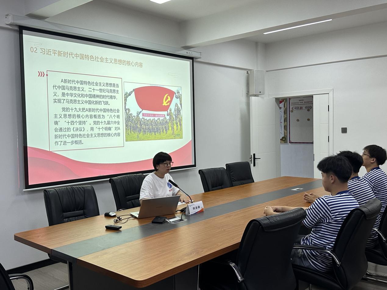 2023 年5月18日19:00圍繞“學(xué)實(shí)踐行黨的二十大,砥礪奮進(jìn)新征程”主題,進(jìn)一步加強(qiáng)新時(shí)代團(tuán)員隊(duì)伍建設(shè),推動(dòng)學(xué)院學(xué)風(fēng)、班風(fēng)建設(shè),陳若衡老師講述了 ,學(xué)思踐悟新思想意味著,我們要緊緊圍繞新時(shí)代的政治任務(wù),全面系統(tǒng)、持續(xù)深入地學(xué)習(xí)新思想,要聯(lián)合馬克思列寧主義、毛澤東思想、鄧小平理論、三個(gè)代表重要思想、科學(xué)發(fā)展觀和習(xí)近平新時(shí)代中國特色社會主義思想,要結(jié)合實(shí)踐、做到讀原文、悟原理、明真象、用心得,盡快理解、把握新思想的精髓和實(shí)質(zhì),用新思想指導(dǎo)工作、改進(jìn)實(shí)踐和提升文化素養(yǎng)。