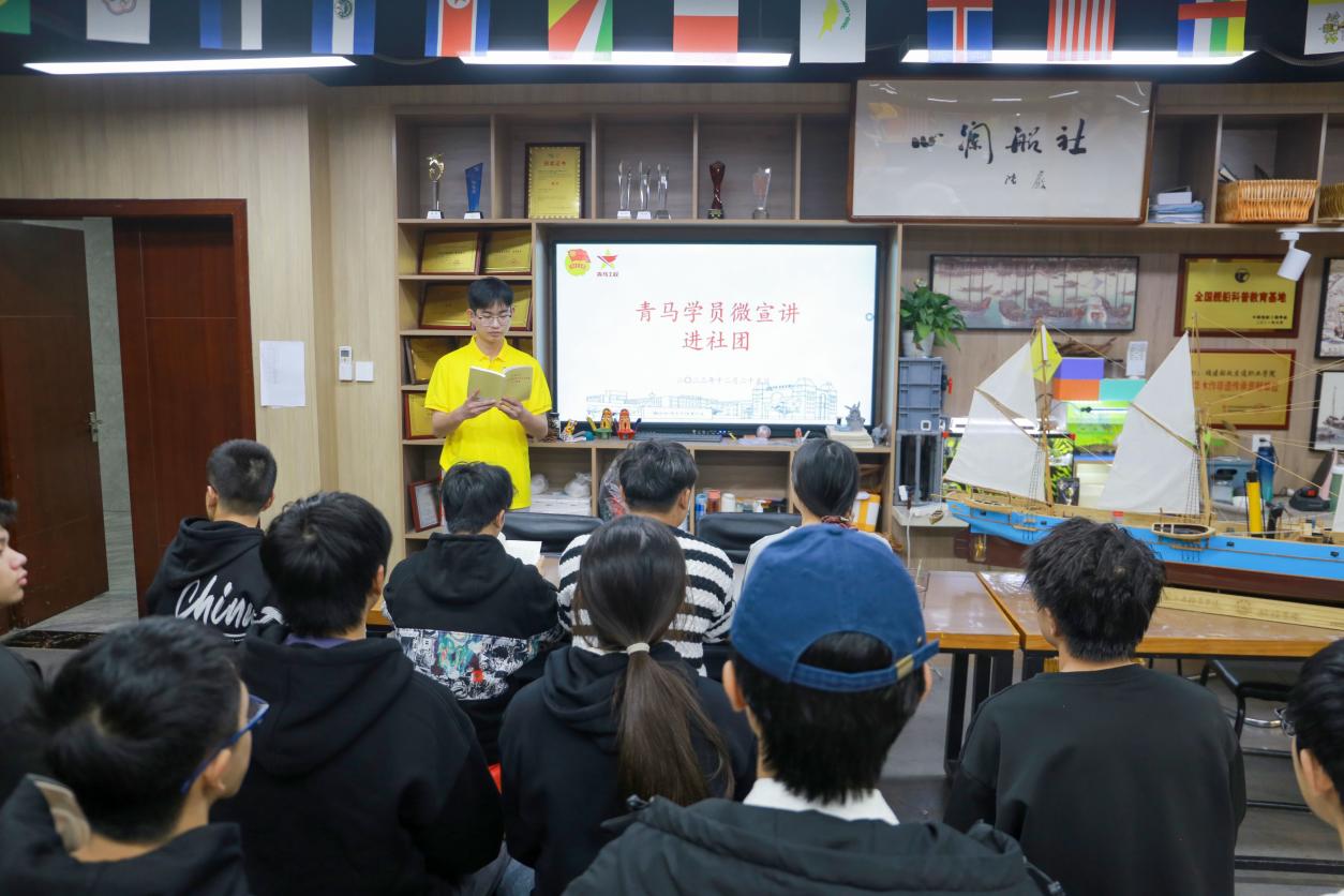 為深入學(xué)習(xí)貫徹習(xí)近平新時(shí)代中國(guó)特色社會(huì)主義思想,充分發(fā)揮青馬學(xué)員示范引領(lǐng)作用,進(jìn)一步學(xué)習(xí)領(lǐng)會(huì)習(xí)近平總書(shū)記重要講話精神,讓廣大青年明確自身使命,傳播青馬聲音,匯集青春力量。近期,航海學(xué)院團(tuán)委組織青馬學(xué)員進(jìn)教室、進(jìn)宿舍、進(jìn)社團(tuán)、進(jìn)實(shí)訓(xùn)基地,進(jìn)行“四進(jìn)”宣講。宣講采取“就地講,現(xiàn)場(chǎng)學(xué),共探討”的講學(xué)研模式
