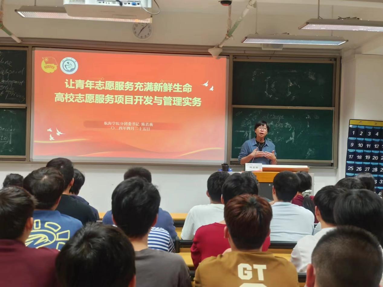 本次開班儀式由航海學院分團委書記陳若蘅老師致詞,并為入團積極分子們開講團校第一課:讓青年志愿服務充滿新鮮生命高校志愿服務項目開發(fā)與管理實務。