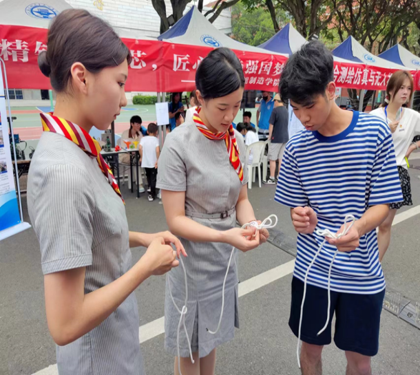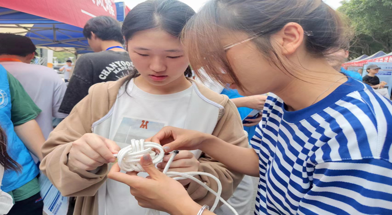在活動現(xiàn)場,我院學子積極向大家展示繩結教學,講解各種繩結的編法以及用處,真正做到了知行合一,學有所用。