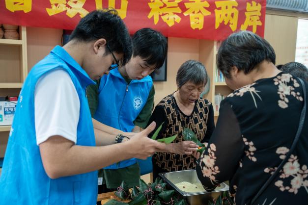 端午節(jié)前夕,鼓山鎮(zhèn)長者食堂里,社區(qū)里的老年居民、黨員志愿者和臺同胞們圍攏在一起,談民俗、包粽子、做香囊,共迎傳統(tǒng)佳節(jié)端午節(jié),大家暢聊端午習俗,“粽”享相聚情誼。