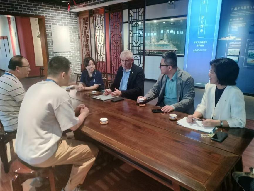 參觀后,貝雷先生與學(xué)院黨支部江文書記和翁國(guó)玲副院長(zhǎng)會(huì)面,就考察情況進(jìn)行溝通。雙方交流了學(xué)院在國(guó)際郵輪乘務(wù)管理專業(yè)的教學(xué)理念、師資力量及發(fā)展規(guī)劃,同時(shí)貝雷先生分享了郵輪企業(yè)在船員培訓(xùn)方面的經(jīng)驗(yàn)和需求,對(duì)共建國(guó)際郵輪船員實(shí)訓(xùn)基地表達(dá)了積極意愿。