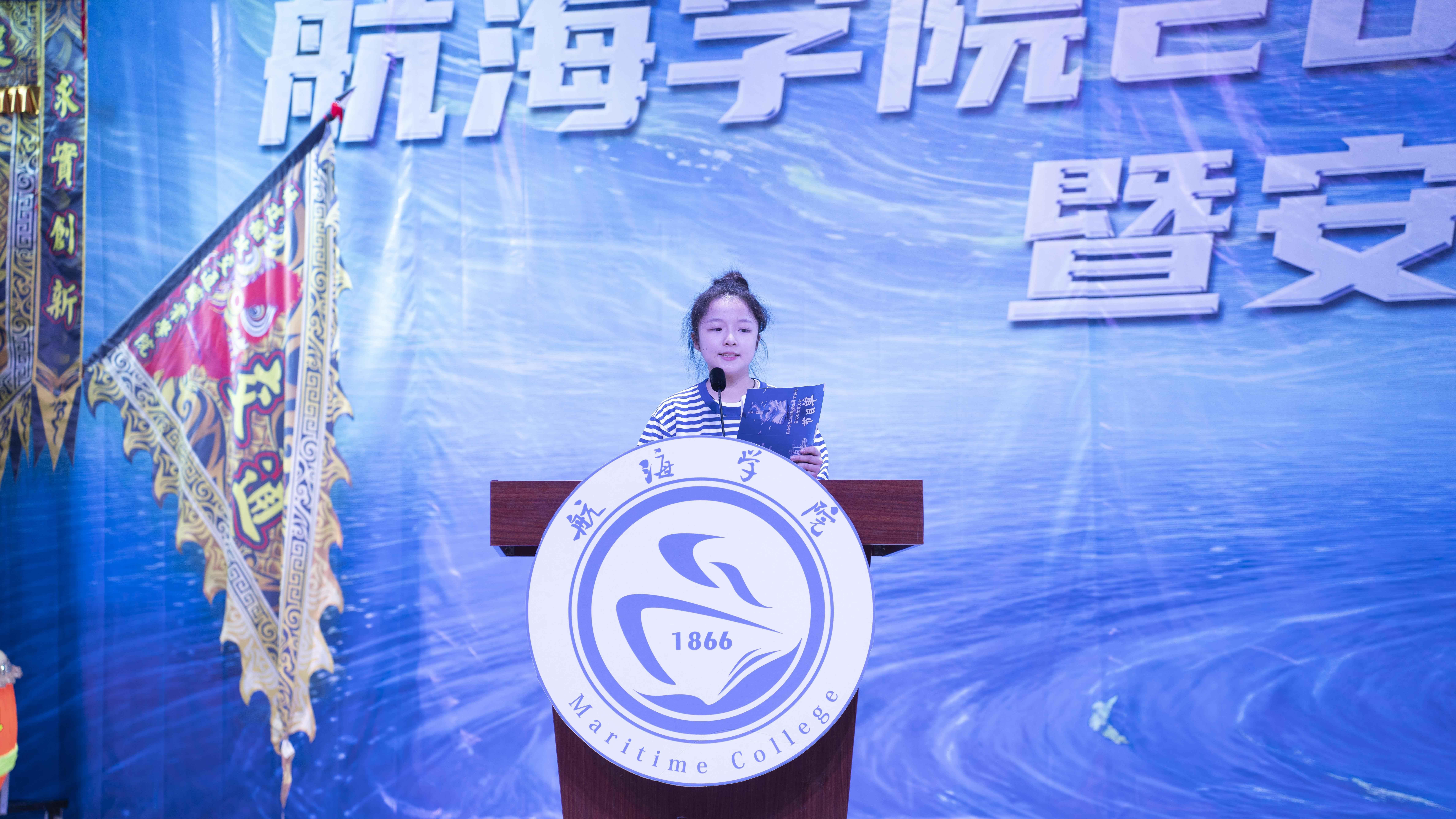 ??他們分別是來自航海技術(shù)專業(yè)的學(xué)生代表李嘉盛、國際郵輪乘務(wù)管理專業(yè)的學(xué)生代表魏金蓉、船舶工程技術(shù)專業(yè)的學(xué)生代表葉陳靜以及輪機(jī)工程技術(shù)專業(yè)的學(xué)生代表羅志毅。他們分享著自己入學(xué)時(shí)的經(jīng)歷,介紹著不同專業(yè)課程內(nèi)容,并希望學(xué)弟學(xué)妹們都能在這里找到人生的航向,揚(yáng)帆起航,實(shí)現(xiàn)夢想。