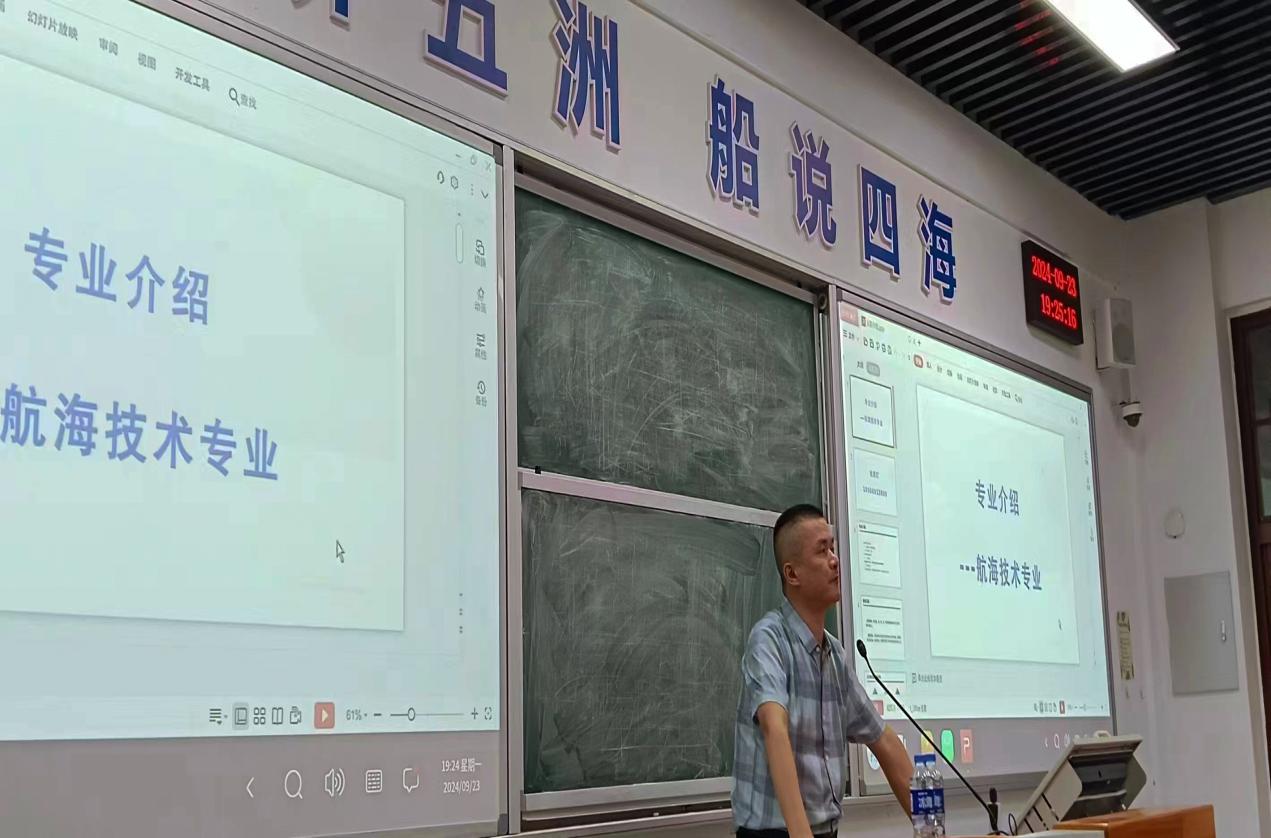 9 月 23 日晚上,32# 航東大教室座無(wú)虛席,一場(chǎng)別開(kāi)生面的新生航海技術(shù)專業(yè)介紹會(huì)在此隆重舉行。本次介紹會(huì)的介紹人是張厚釘老師和福建省海運(yùn)集團(tuán)中平船舶管理有限公司綜合辦綜合主管于建晨主管。