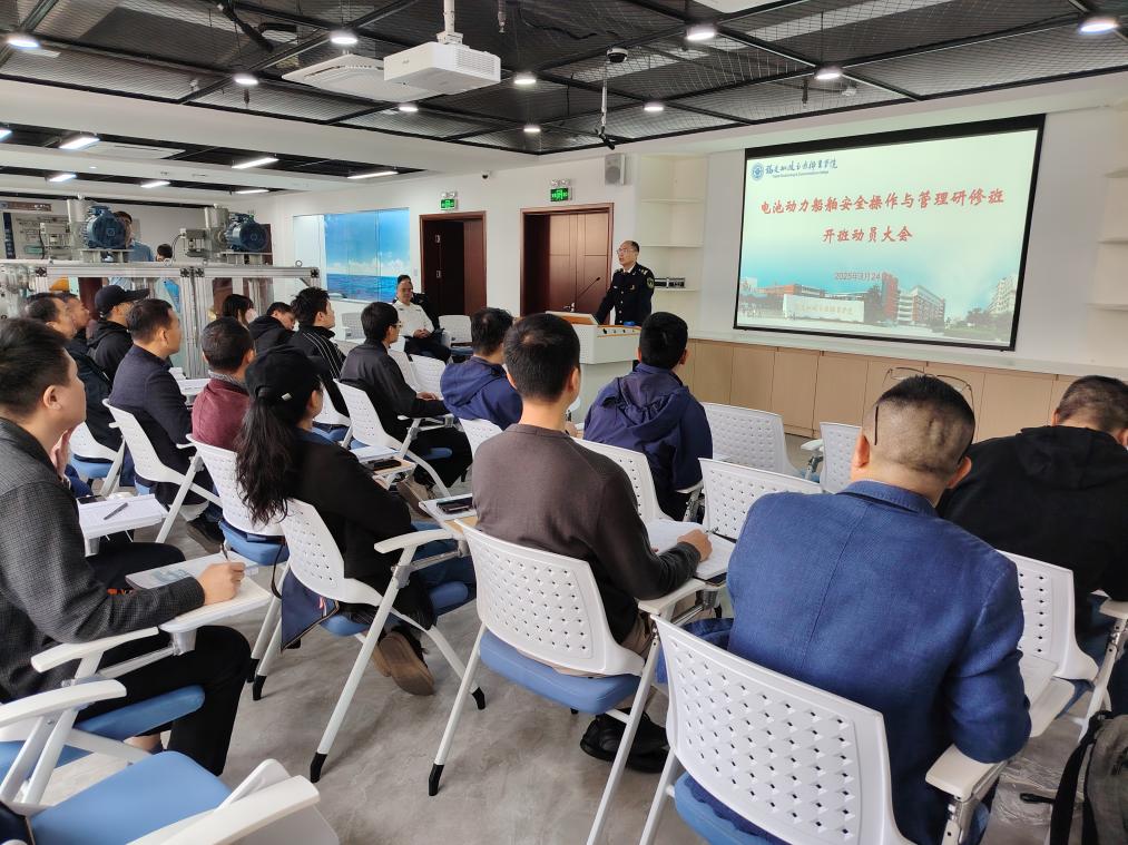 本次培訓(xùn)班為期2天,培訓(xùn)學(xué)員包括電池動力船舶船員和岸基管理人員。課程涵蓋了電池動力船舶的基礎(chǔ)理論、船舶管理法規(guī)、值班與應(yīng)急措施、電池動力系統(tǒng)原理等多方面內(nèi)容,全面提升電池動力船舶船員操作技能和應(yīng)急處理能力。為保證船員培訓(xùn)質(zhì)量,在開班前期,根據(jù)電池動力船舶的特點和需求,我校聯(lián)合福州海事局組織召開電池動力船舶船員實操訓(xùn)練基地建設(shè)專題調(diào)研會,針對性選擇實操教學(xué)實船,制定科學(xué)合理的實訓(xùn)方案,確保培訓(xùn)取得實效。