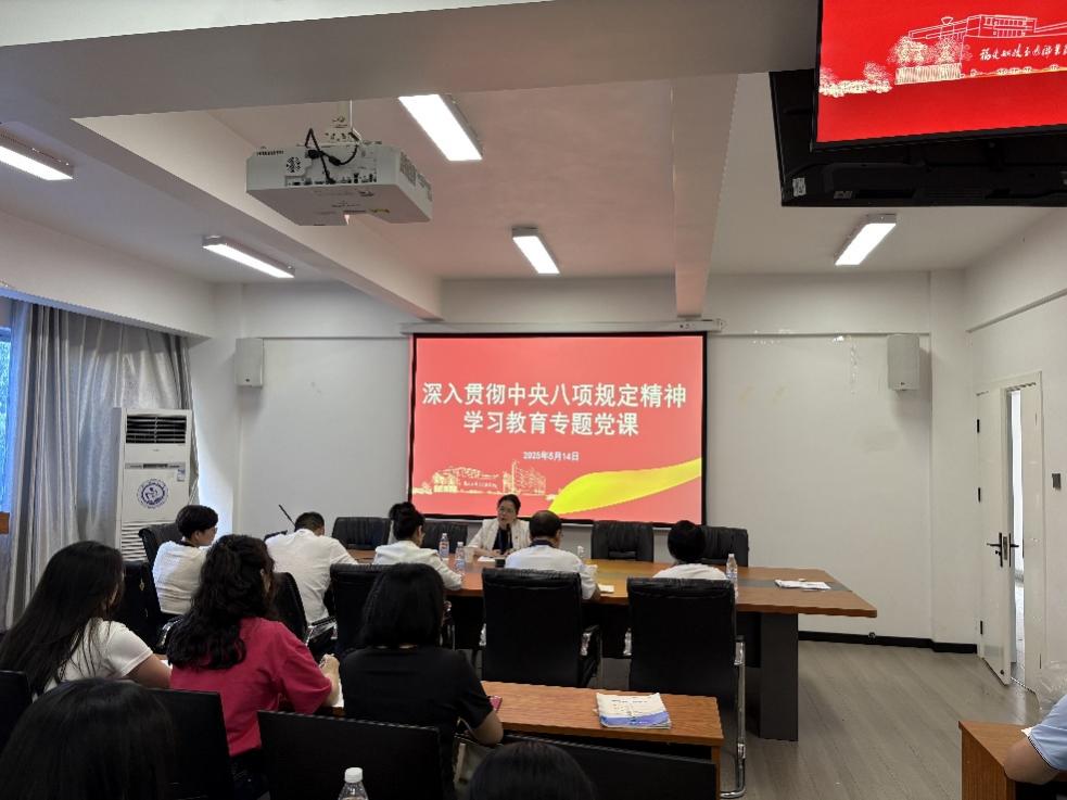 陳艷紅圍繞“歷史脈絡(luò)”“實踐成效”“現(xiàn)實挑戰(zhàn)”“學(xué)習(xí)要求”四個維度,從“深刻把握習(xí)近平總書記關(guān)于作風(fēng)建設(shè)的重要論述”“系統(tǒng)掌握中央八項規(guī)定精神及師德師風(fēng)的精神內(nèi)涵”“爭做踐行中央八項規(guī)定精神的合格黨員”三個方面,對違反中央八項規(guī)定精神和師德師風(fēng)的表現(xiàn)形式進行詳細(xì)講解,并聚焦“作風(fēng)建設(shè)與立德樹人深度融合”,為黨員干部敲響紀(jì)律警鐘、明確行動方向。