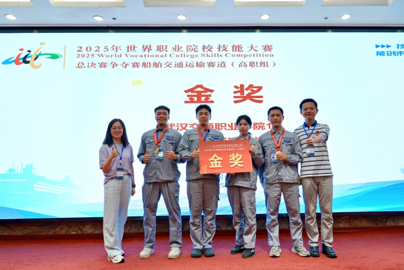 8 月 22 日至 25 日,2025 年世界職業(yè)院校技能大賽船舶交通運(yùn)輸賽道(高職組)總決賽在武漢船舶職業(yè)技術(shù)學(xué)院舉行。全國 64 支代表隊(duì)同臺(tái)競技,我校航海學(xué)院學(xué)子組成的參賽團(tuán)隊(duì)脫穎而出,勇奪金獎(jiǎng),這也是我校在 2025 年世校賽中斬獲的首個(gè)金獎(jiǎng)。