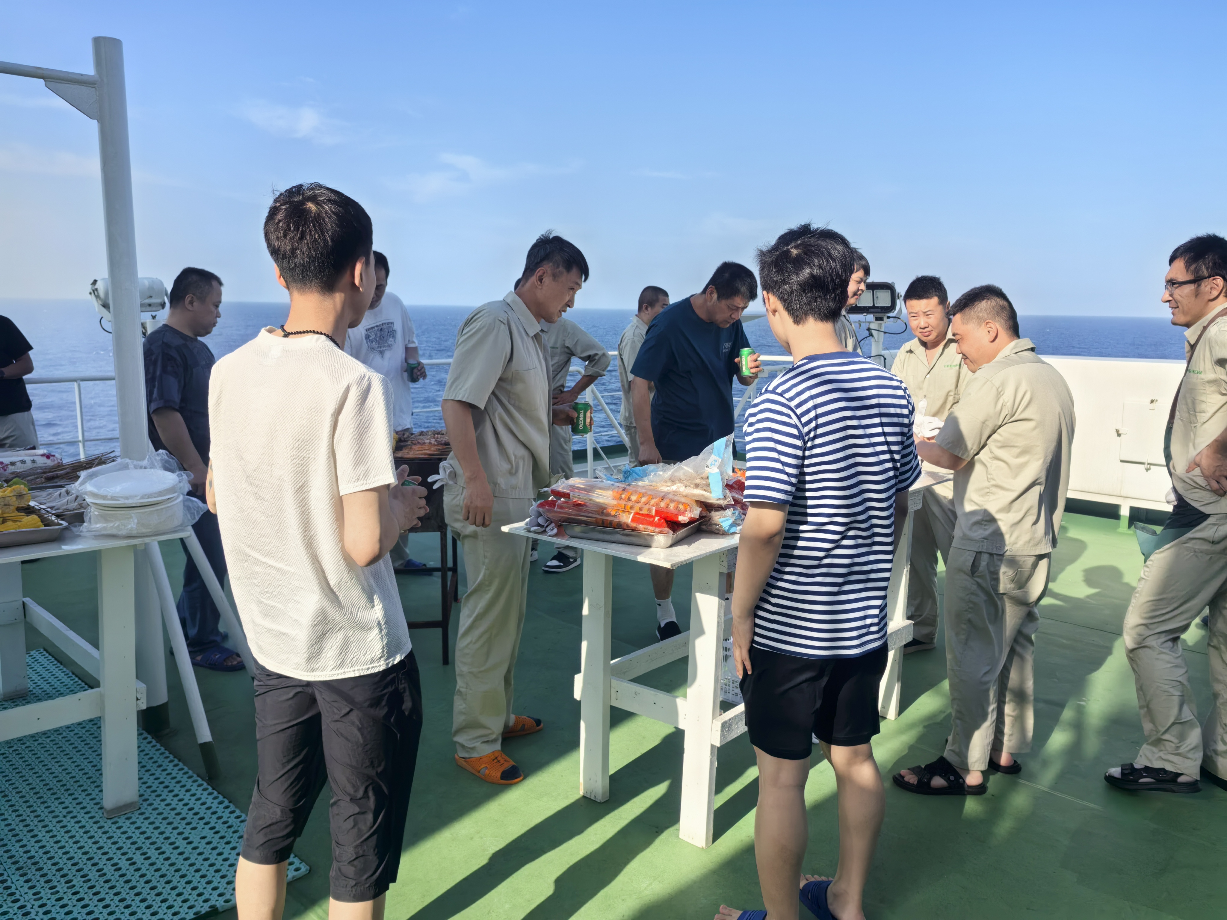 塢修期間,我們在船廠迎來了 2025 年春節(jié)。作為剛畢業(yè)不久的學生,這是我第一次離家這么遠過年,也是第一次在船上過年。除夕當天,船廠放假,我們開始著手準備年夜飯。作為實習生,我主動提出幫忙,和大廚一起忙碌。雖然我做菜經驗不多,但在大廚的耐心指導下,經過一番努力,總算順利完成了年夜飯的制作。我和大家一同分享新年的喜悅,還與幾位船員合影留念,定格下這個特別又有意義的新年瞬間。對于第一次離家過年的我來說,船上輕松愉快的氛圍緩解了我的思鄉(xiāng)之情,同事們的關心與照顧也讓我倍感溫暖。除夕夜,大家歡聚一堂,一邊享用美食,一邊互送新年祝福。當新年鐘聲敲響時,我們共同舉杯,祝愿新的一年航行順利、一帆風順。對我而言,這次船上的新年既難忘又珍貴,能和一群志同道合的同事并肩工作,更是一件無比開心的事。都說 “百年修得同船渡”,我為自己能擁有這樣優(yōu)秀的同事團隊而感到幸運。
