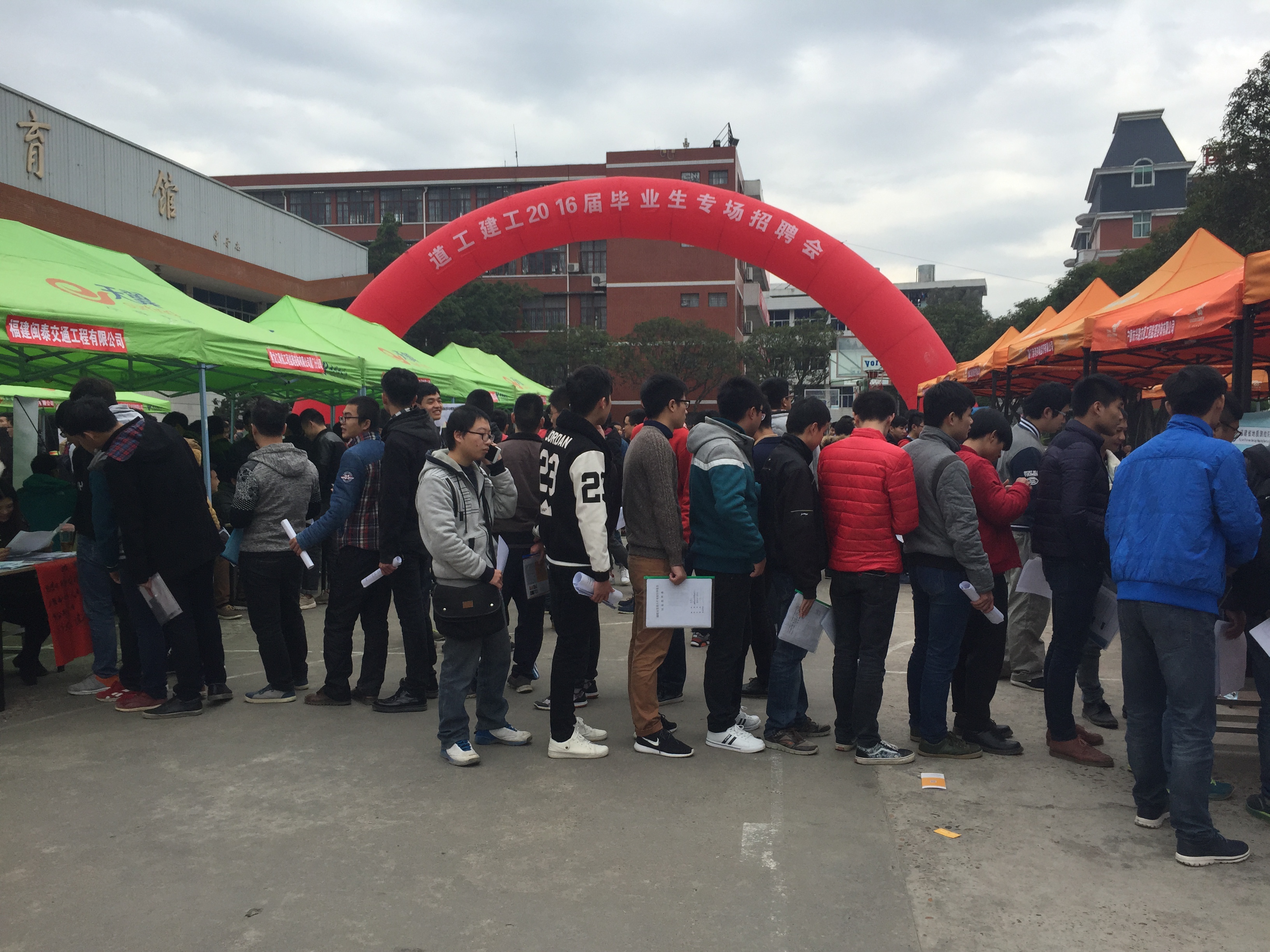 12月19日上午,道路工程系、建筑工程系聯(lián)合主辦的2016屆畢業(yè)生專場校園招聘會在籃球場隆重舉行。廈門港灣監(jiān)理咨詢有限公司,福建閩泰交通有限公司等三十多家省內外知名企業(yè)參加了本次招聘會,為我系學生提供就業(yè)實習崗位近400個。