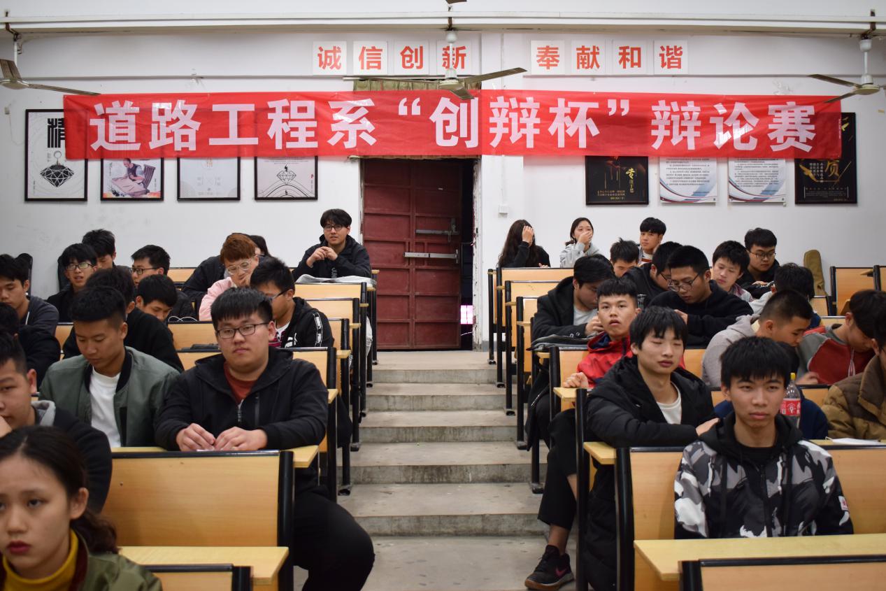 為了活躍校園文化氣氛,增強(qiáng)學(xué)生的邏輯思維能力和語(yǔ)言表達(dá)能力,道路工程系與2019年4月舉行了道路工程系“創(chuàng)辯杯”辯論賽,共有12組選手參加了這次比賽。