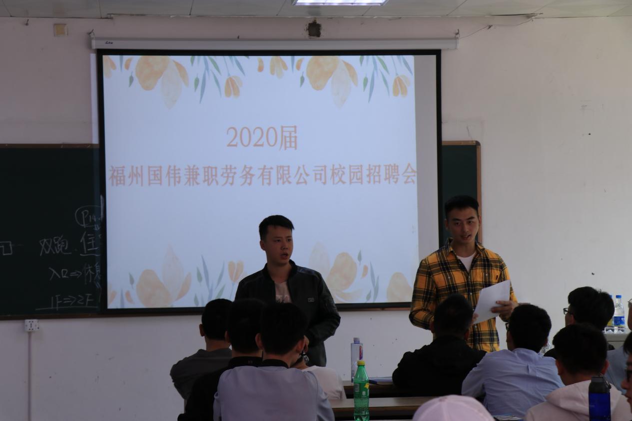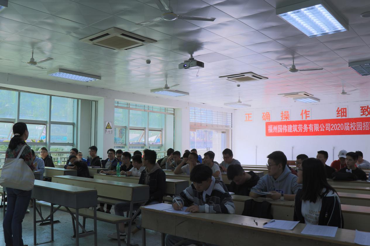 為了讓我系畢業(yè)生清晰地了解市場(chǎng)對(duì)于人才的需求方向,同時(shí)更好的抓住就業(yè)機(jī)會(huì),2019年11月11日,道路工程系在南區(qū)科技樓102教室舉行福州國(guó)偉建筑勞務(wù)有限公司2020屆校園招聘會(huì)。
