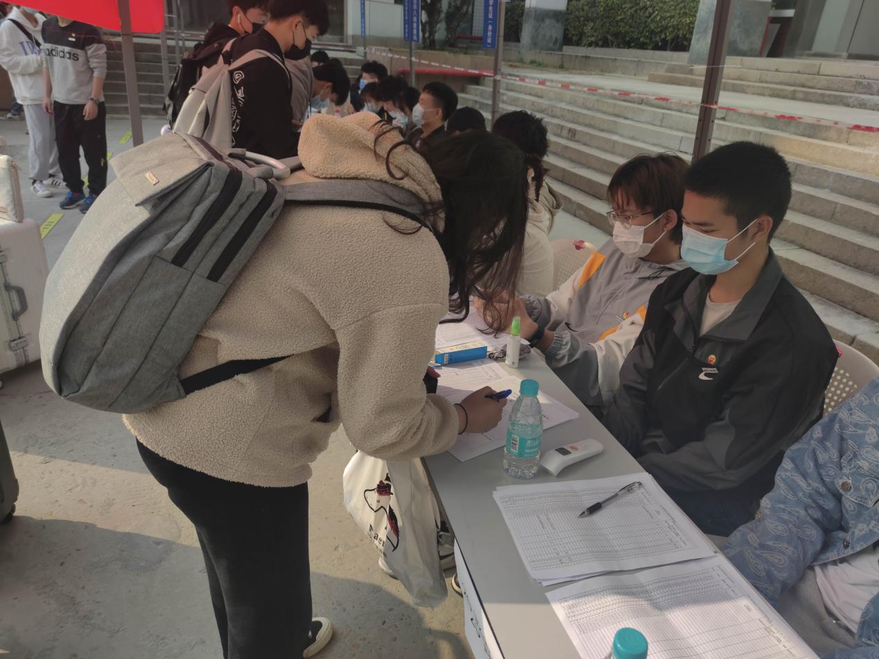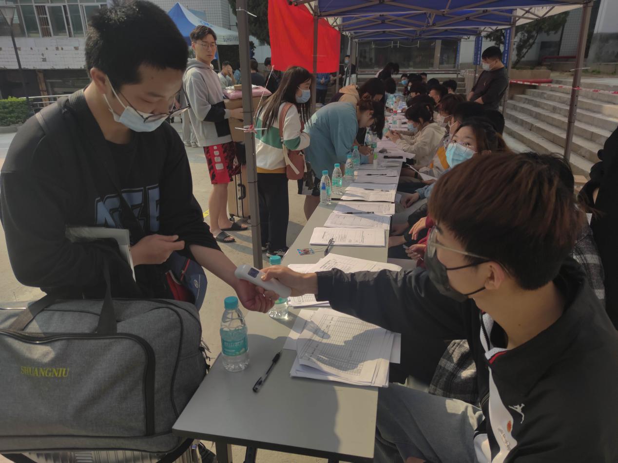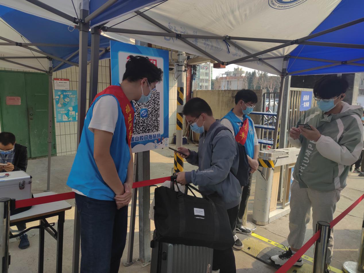 “同學(xué)們,歡迎返校!”在志愿服務(wù)活動過程中,土木工程學(xué)院黨組織認(rèn)真貫徹學(xué)校的返校工作安排和方便返校學(xué)生的宗旨,采取了一系列有效措施:帶領(lǐng)學(xué)生黨員和入黨積極分子耐心細致地引導(dǎo)返校學(xué)生按照預(yù)定流程掃碼、測溫和消毒。在高蓋山校區(qū)大門口、圖書館前報到處,都能看到黨員志愿者熱情地指引并幫助返校學(xué)生,耐心地為每位學(xué)生服務(wù),他們嚴(yán)謹(jǐn)?shù)剡M行測體溫、填寫表格、確認(rèn)宿舍入住碼,盡心盡責(zé)地做好每一件工作,確保返校工作安全、有序進行。