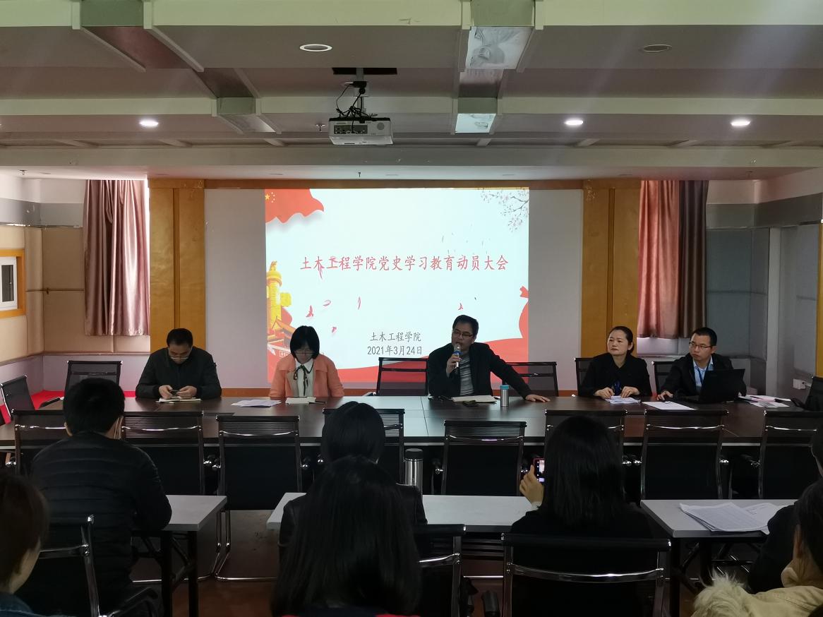 3月24日下午,土木工程學院在科技樓1007召開黨史學習教育動員大會,深入學習貫徹習近平總書記在黨史學習教育動員大會上的重要講話精神,落實福建省黨史學習教育動員大會、領(lǐng)導(dǎo)小組第一次會議部署要求。
