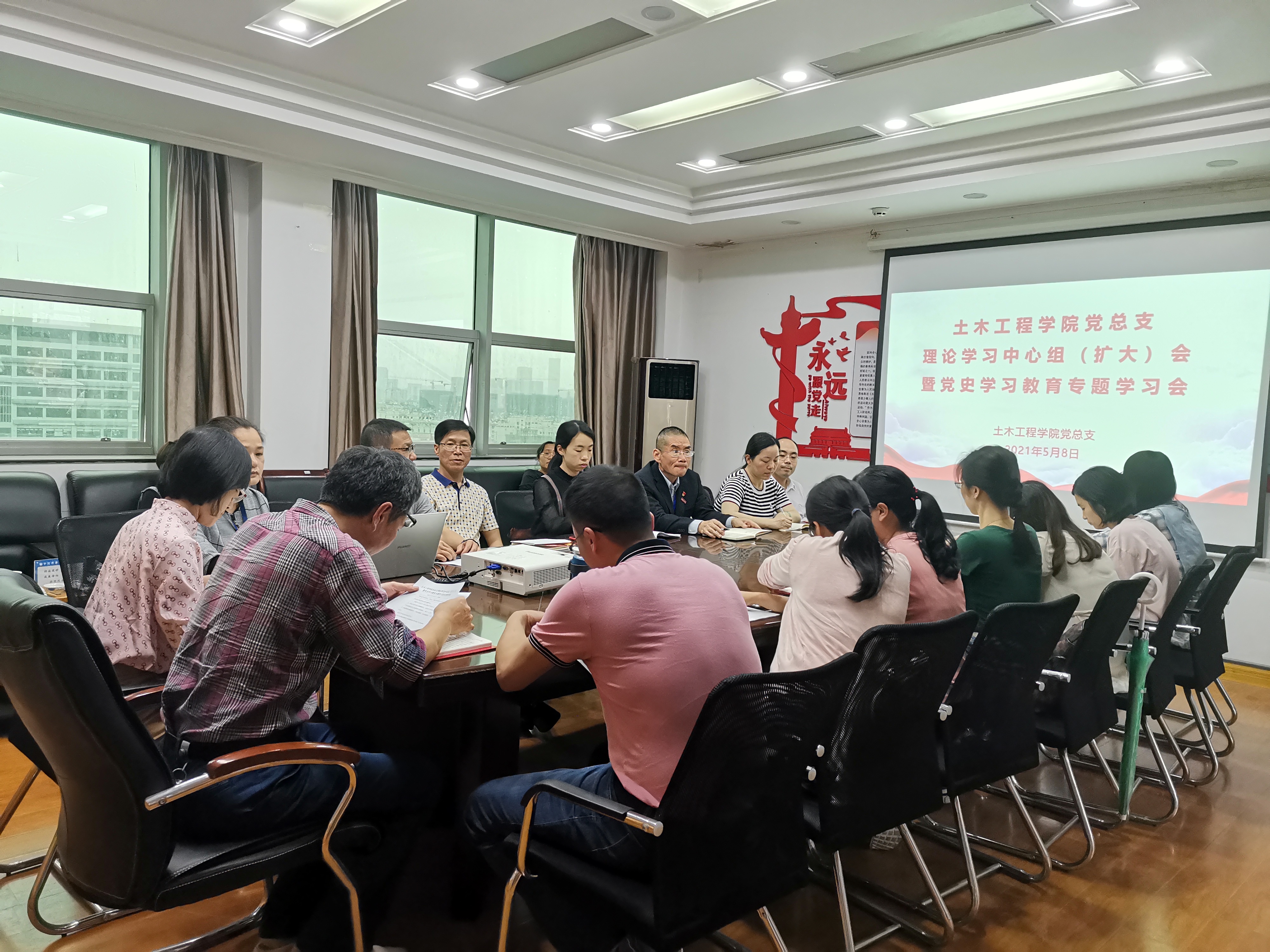為持續(xù)深入推進(jìn)黨史學(xué)習(xí)教育和“再學(xué)習(xí)、再調(diào)研、再落實(shí)”活動(dòng), 5月8日下午,土木工程學(xué)院在科技樓1009會(huì)議室召開(kāi)黨總支理論學(xué)習(xí)中心組(擴(kuò)大)會(huì)暨黨史學(xué)習(xí)教育專(zhuān)題學(xué)習(xí)會(huì)。學(xué)院黨總支委員、副科級(jí)以上干部、教研室主任、各支部書(shū)記(副書(shū)記)、實(shí)訓(xùn)中心負(fù)責(zé)人參加學(xué)習(xí)。會(huì)議由土木工程學(xué)院黨總支書(shū)記高杰主持。
