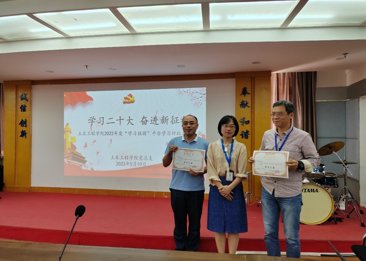 土木工程學院領(lǐng)導(dǎo)為2022年度 “學習強國”獲獎的組織和個人頒獎