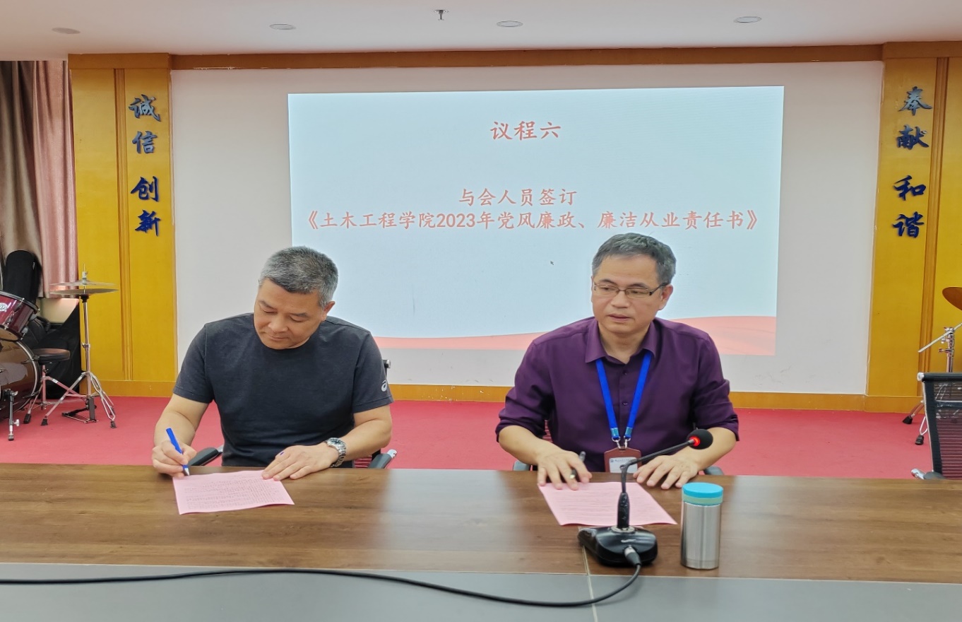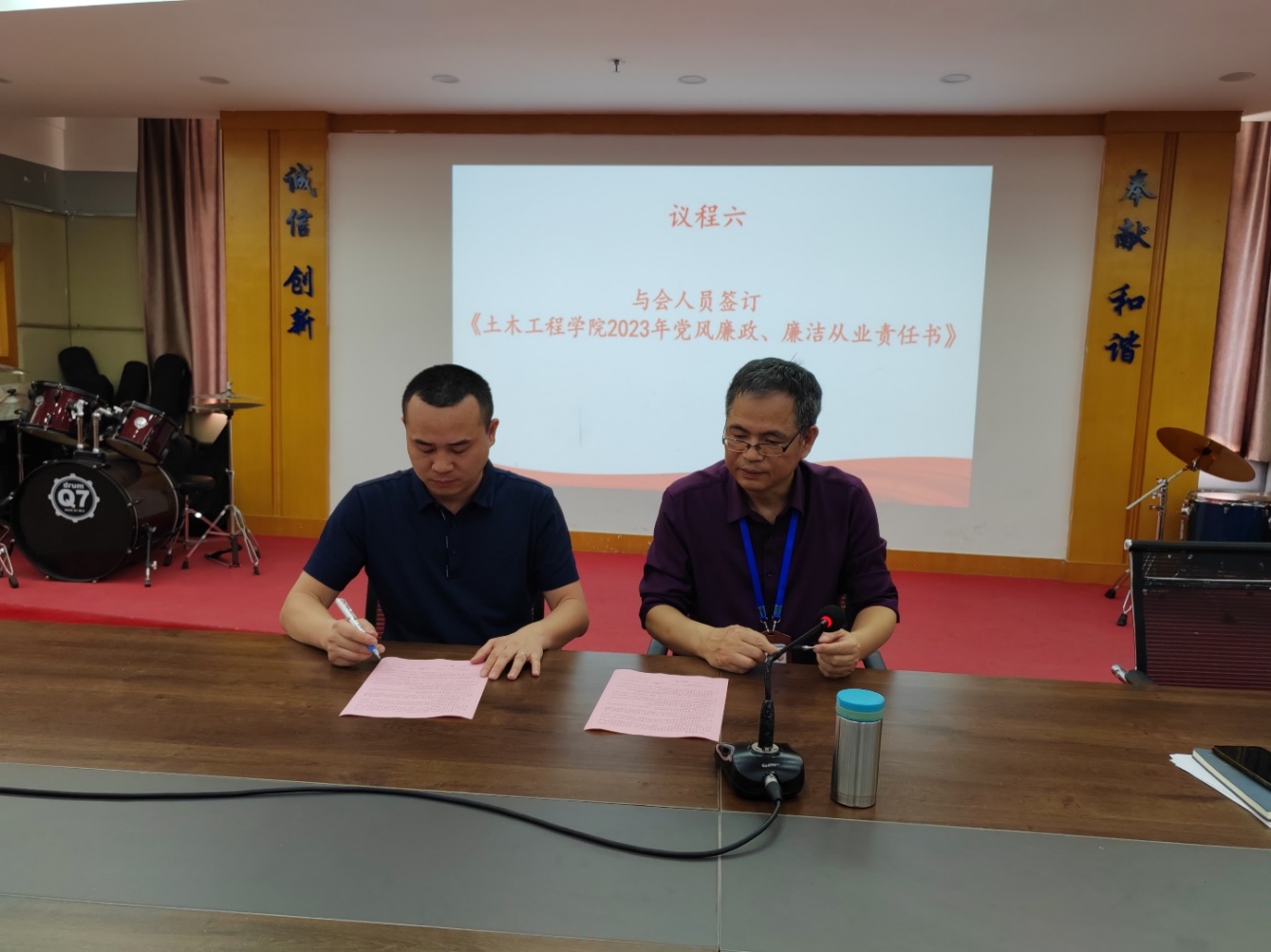 高杰同志代表土木工程學(xué)院黨總支和與會(huì)人員簽訂《廉潔從業(yè)責(zé)任書(shū)》(二)
