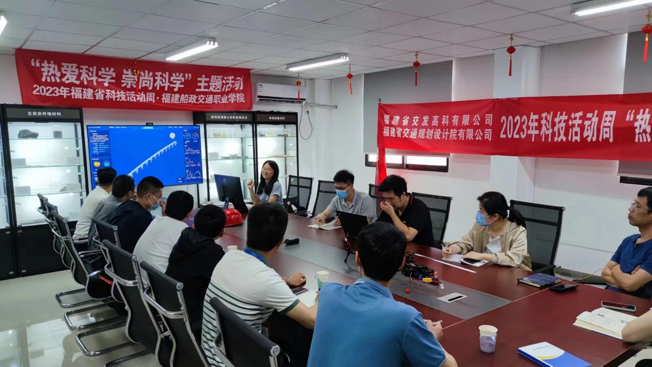 5月25日,由福建省交發(fā)高科有限公司主辦,以“熱愛(ài)科學(xué)、崇尚科學(xué)”為主題2023年福建省交通運(yùn)輸科技活動(dòng)周在福建省交發(fā)高科有限公司12號(hào)樓4樓會(huì)議室舉行。為廣泛宣傳我校在交通建設(shè)領(lǐng)域科技創(chuàng)新成果,土木工程學(xué)院“工程智慧施工協(xié)同管理(BIM+GIS)平臺(tái)”項(xiàng)目應(yīng)邀參加科技創(chuàng)新成果展示。