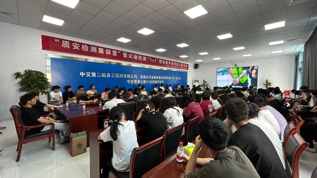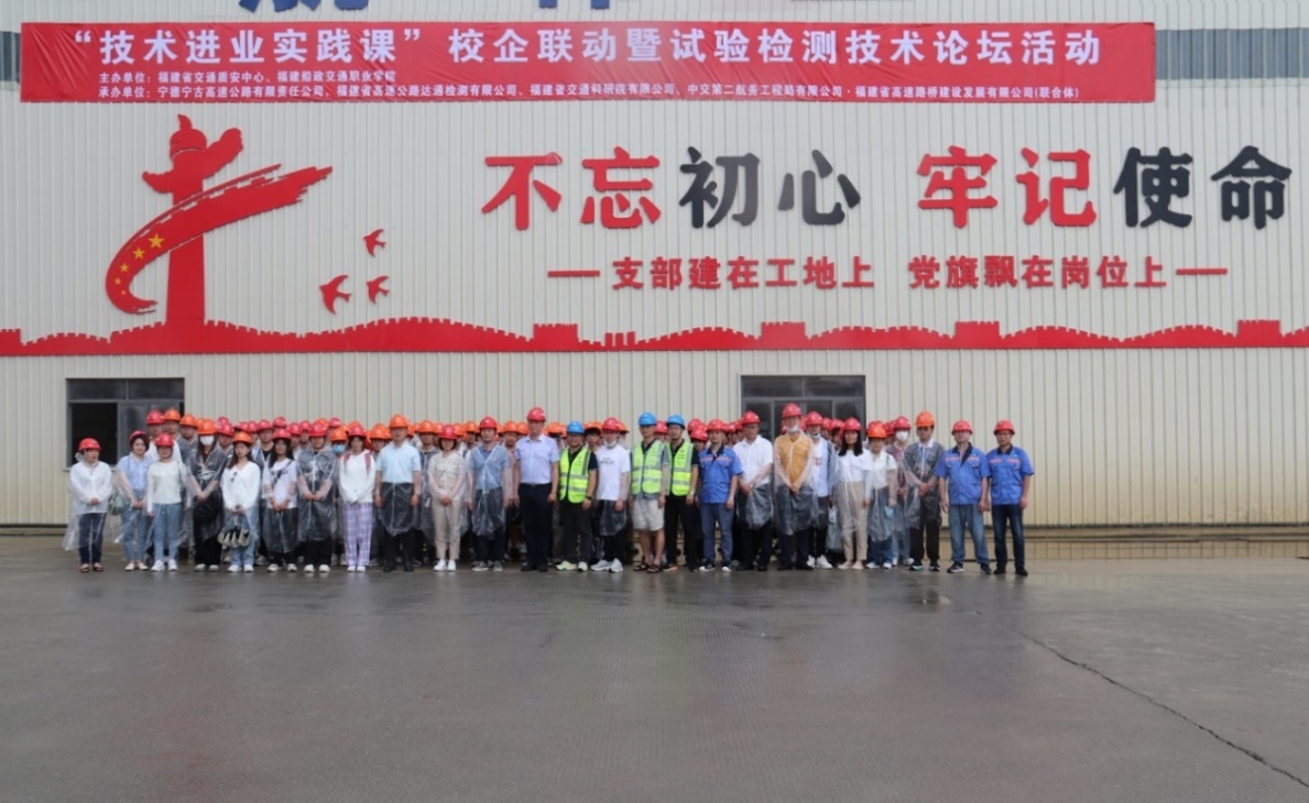 為深入貫徹黨的二十大精神和習近平總書記關(guān)于職業(yè)教育的重要指示批示精神,扎實開展學習貫徹習近平新時代中國特色社會主義思想主題教育,深入實施“深學爭優(yōu)、敢為爭先、實干爭效”行動,深入開展“校企融合、校企聯(lián)動”,引導學生做好應對將來就業(yè)的思想和技能理論準備,2023年6月7日,在福建省交通質(zhì)安中心和福建船政交通職業(yè)學院土木工程學院聯(lián)合精心部署安排下,土木工程學院黨總支赴寧古高速C1合同段,與寧德寧古高速公路有限責任公司、部分檢測機構(gòu)及項目參建單位共同開展“當好交通建設(shè)‘開路先鋒’打造校企質(zhì)安思政品牌”主題黨日活動暨“技術(shù)進業(yè)實踐課”校企聯(lián)動暨試驗檢測技術(shù)論壇活動。