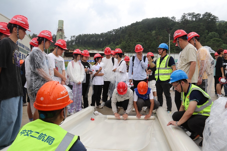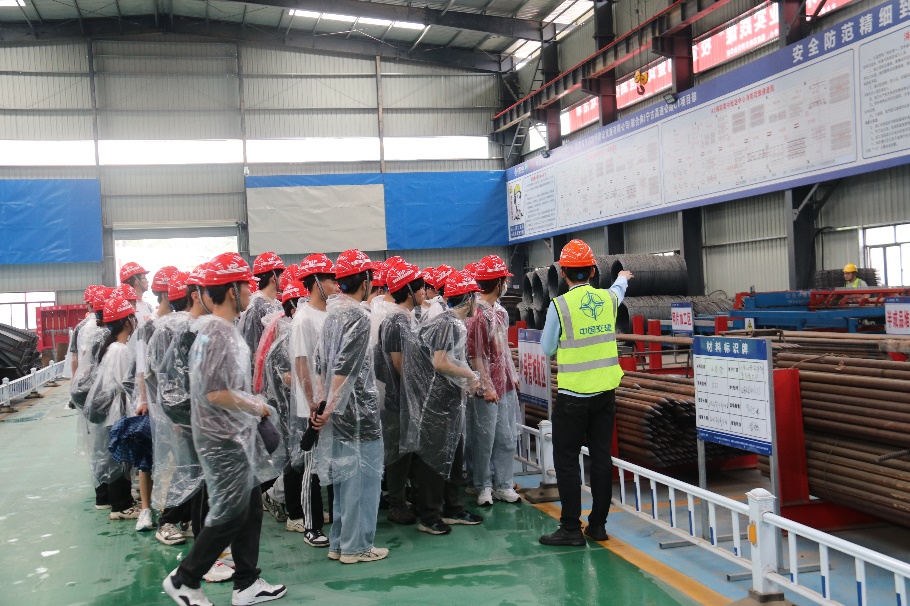 21道路與橋梁工程技術(shù)專業(yè)學生還前往路基、隧道施工現(xiàn)場開展“1+1”試驗檢測聯(lián)動教學師帶徒主題活動。隧道施工現(xiàn)場試驗檢測,主要包括二襯地質(zhì)雷達檢測、大面平整度檢測?,F(xiàn)場檢測人員首先向?qū)W生講解檢測原理及步驟,接著在現(xiàn)場人員的指導下學生依次完成了檢測項目。在試驗結(jié)束后,學生們前往鋼筋加工廠,加工廠里的智能器械設(shè)備和往日一樣忙于各式各樣的鋼筋加工,學生們也通過現(xiàn)場人員的講解以及近距離觀察,對鋼筋加工有了更深入的了解。