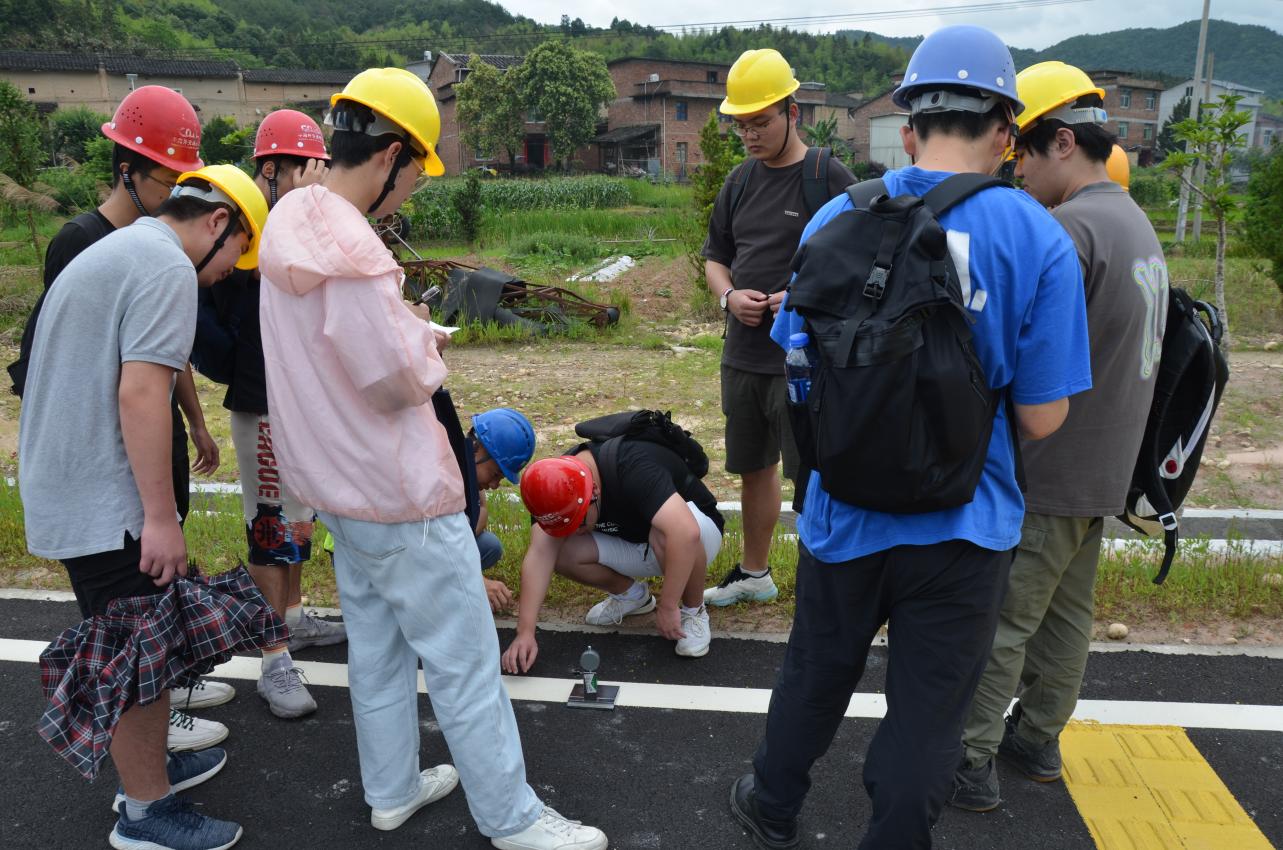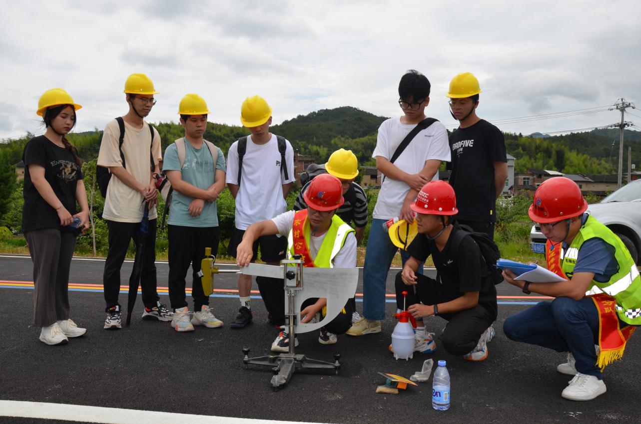 在檢測(cè)行業(yè)專(zhuān)家和黨員教師的指導(dǎo)下,21道路與橋梁工程技術(shù)專(zhuān)業(yè)學(xué)生踴躍參與并依次完成了瀝青路面及其交通安全附屬設(shè)施現(xiàn)場(chǎng)檢測(cè)。瀝青路面現(xiàn)場(chǎng)檢測(cè)參數(shù)包括路面的壓實(shí)度、厚度、構(gòu)造深度、摩擦系數(shù),交通安全附屬設(shè)施現(xiàn)場(chǎng)檢測(cè)參數(shù)包括標(biāo)志標(biāo)線逆反射系數(shù)、標(biāo)線厚度、標(biāo)志基礎(chǔ)尺寸、立柱埋深及涂層厚度等?;顒?dòng)中,專(zhuān)家們還向?qū)W生們?cè)敿?xì)講解了瀝青路面施工質(zhì)量動(dòng)態(tài)管理過(guò)程中質(zhì)量檢測(cè)內(nèi)容及技術(shù)標(biāo)準(zhǔn),并根據(jù)《公路瀝青路面施工技術(shù)規(guī)范》《公路工程質(zhì)量檢驗(yàn)評(píng)定標(biāo)準(zhǔn)》,指導(dǎo)學(xué)生分析現(xiàn)場(chǎng)檢測(cè)數(shù)據(jù)、評(píng)定路面施工質(zhì)量。