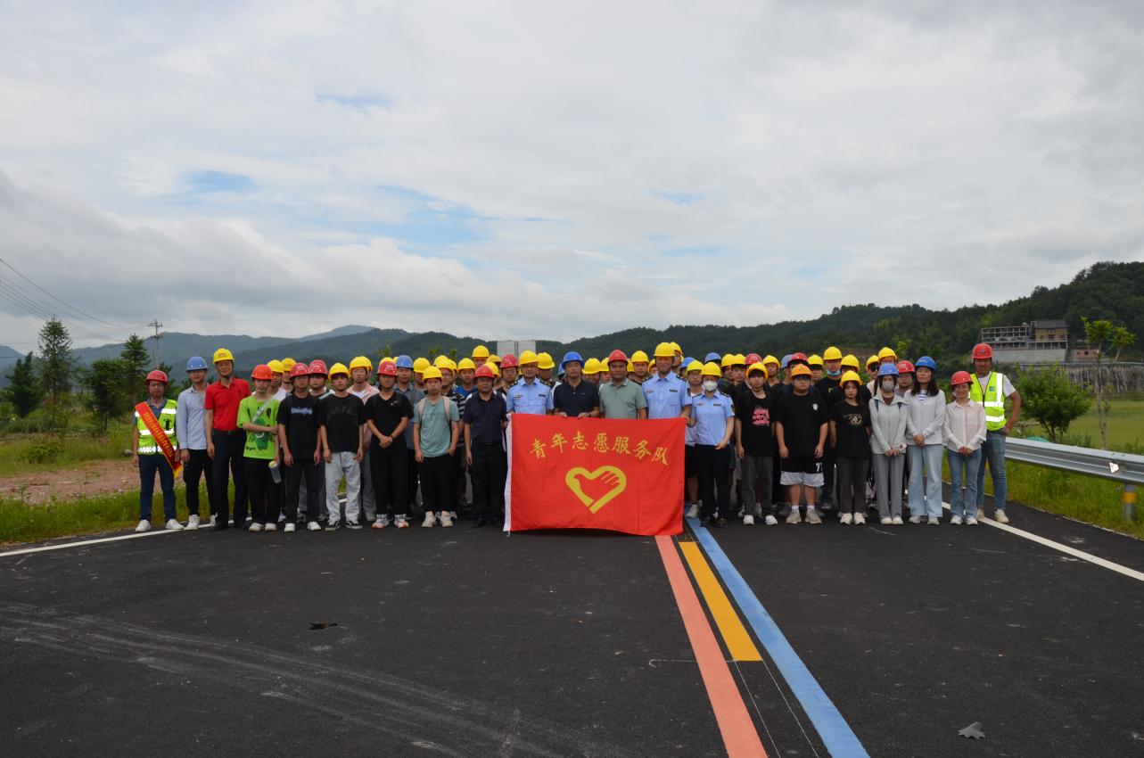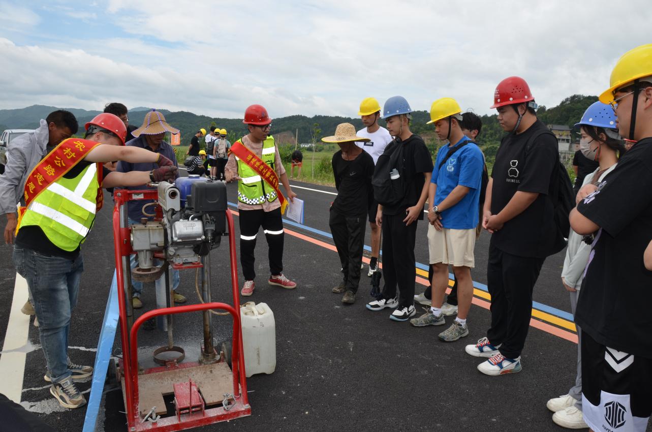 土木工程學(xué)院副院長(zhǎng)朱明栓帶領(lǐng)土木工程學(xué)院第三、第四、第八黨支部黨員教師、21道路與橋梁工程技術(shù)專(zhuān)業(yè)學(xué)生119人,前往政永高速大橋互通及連接線工程喬洋至溪洲段公路工程(環(huán)翠屏湖農(nóng)村公路)施工現(xiàn)場(chǎng),開(kāi)展質(zhì)安檢測(cè)志愿服務(wù),為鄉(xiāng)村振興提供堅(jiān)實(shí)的交通安全保障。