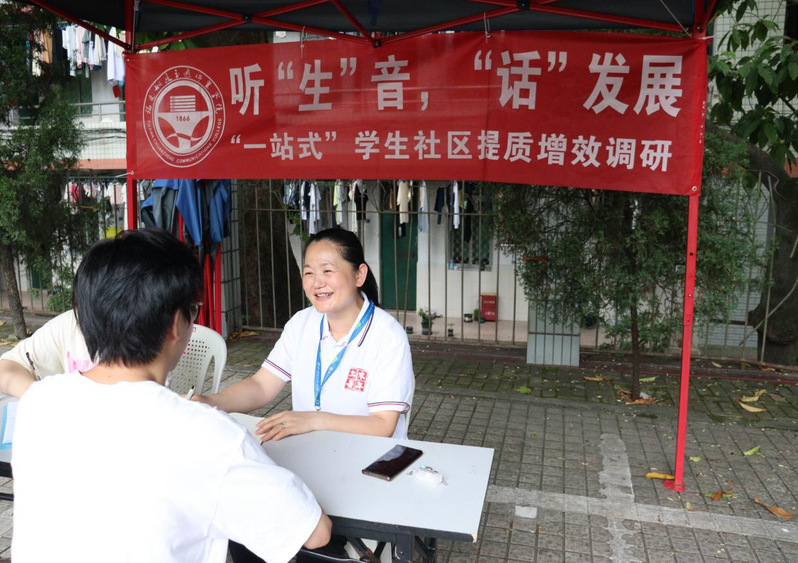 6月8日下午,高杰同志在福道園三號樓前開展蹲點式調研,與土木學子們共話“一站式”學生社區(qū)提質增效。在調研中,高杰書同志與同學們熱切交談,現(xiàn)場學生調研四個方面各抒己見,高杰同志認真傾聽每位同學的發(fā)言,對同學提出的問題給予耐心解答。除此之外,同學們還從學生黨員先鋒模范作用發(fā)揮、求職就業(yè)、創(chuàng)新創(chuàng)業(yè)、頂崗實習以及專升本等問題同高杰同志熱切交流,高杰同志真誠與同學們交換看法、溝通思想,并對同學們心系學校發(fā)展、積極建言獻策給予了充分肯定。調研現(xiàn)場還發(fā)放調研問卷120多份,收到意見建議14條。