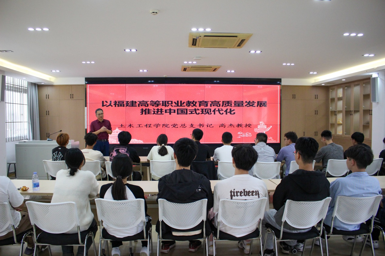 全面貫徹黨的二十大精神,深入開展學習貫徹習近平新時代中國特色社會主義思想主題教育,實施“深學爭優(yōu)、敢為爭先、實干爭效”行動,近日,土木工程學院黨總支書記高杰同志、院長黃穎同志分別以“以福建高等職業(yè)教育高質(zhì)量發(fā)展推進中國式現(xiàn)代化”和“爭做有理想、敢擔當、能吃苦、肯奮斗的新時代好青年”為主題為土木工程學院青年學生上形勢與政策課。