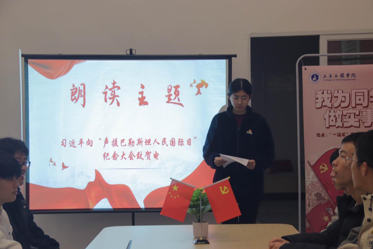 分享會上,2023級建設(shè)工程管理(3+2)1班文娛委員林君琦,通過朗讀習(xí)近平的工作指示原文,帶領(lǐng)同學(xué)們學(xué)習(xí)“習(xí)近平向聲援巴勒斯坦人民國際日紀(jì)念大會致賀電”,學(xué)思想、悟深度,將文章內(nèi)容轉(zhuǎn)化為自己的學(xué)習(xí)動力。