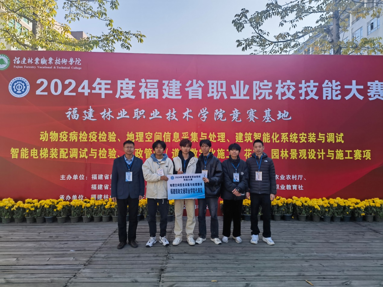 2023年12月22日至24日,2024年度福建省職業(yè)院校技能大賽(高職組)“地理空間信息采集與處理”賽項在福建林業(yè)職業(yè)技術(shù)學(xué)院舉行,土木工程學(xué)院派出23建設(shè)工程監(jiān)理(3+2)3班余明富、22測繪地理信息技術(shù)1班何錦輝以及23建設(shè)工程監(jiān)理(3+2)1班蔡文湟和傅成鋼等四位同學(xué)參賽。賽場上四位選手克服了低溫霜凍不利天氣的影響,表現(xiàn)沉著冷靜,發(fā)揮出色,高質(zhì)量完成了水準(zhǔn)測量、數(shù)字測圖和導(dǎo)線測量三個賽項任務(wù)。經(jīng)過激烈角逐,取得全省第三名,團體二等獎的佳績。